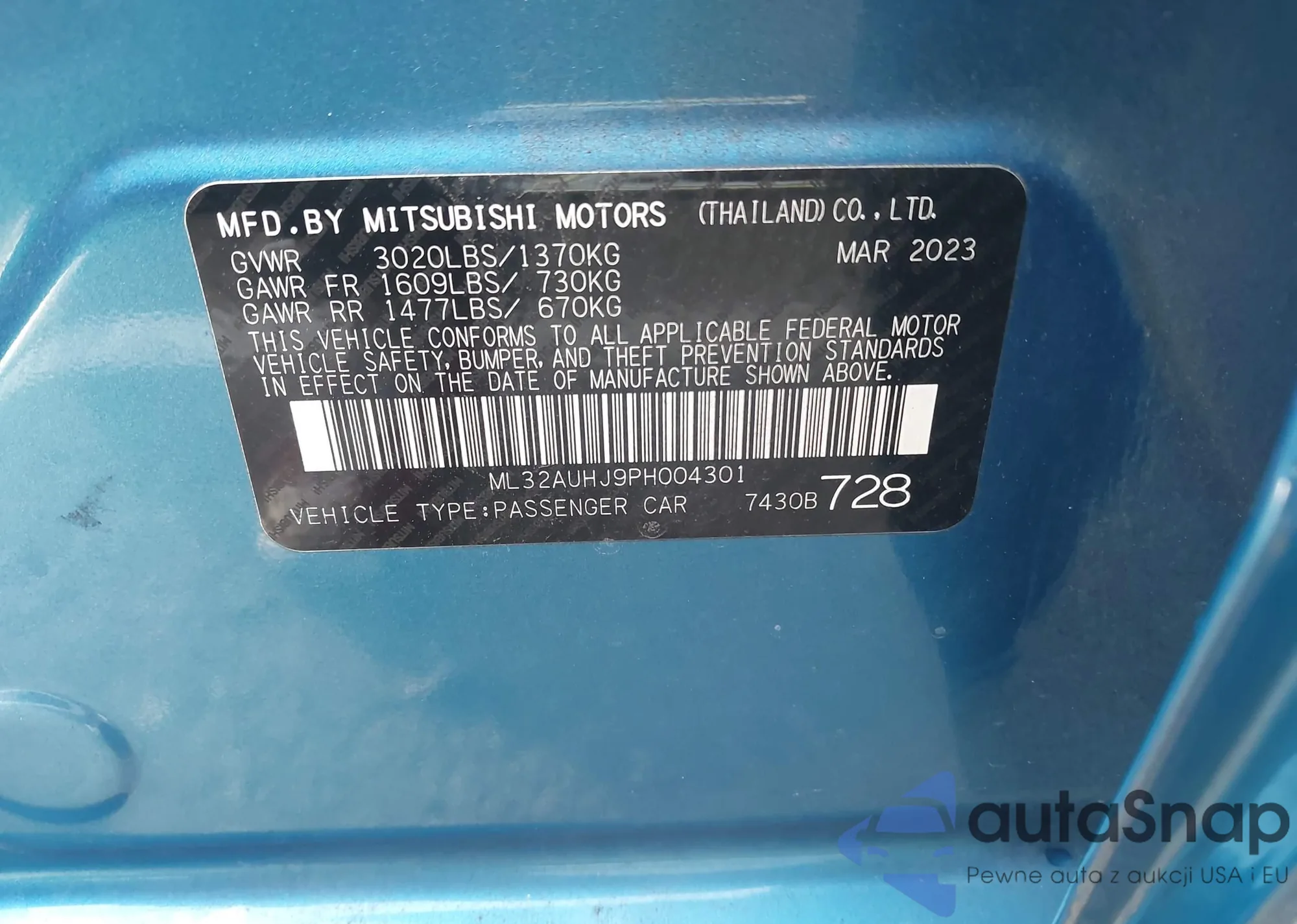 • VIN ML32AUHJ9PH004301