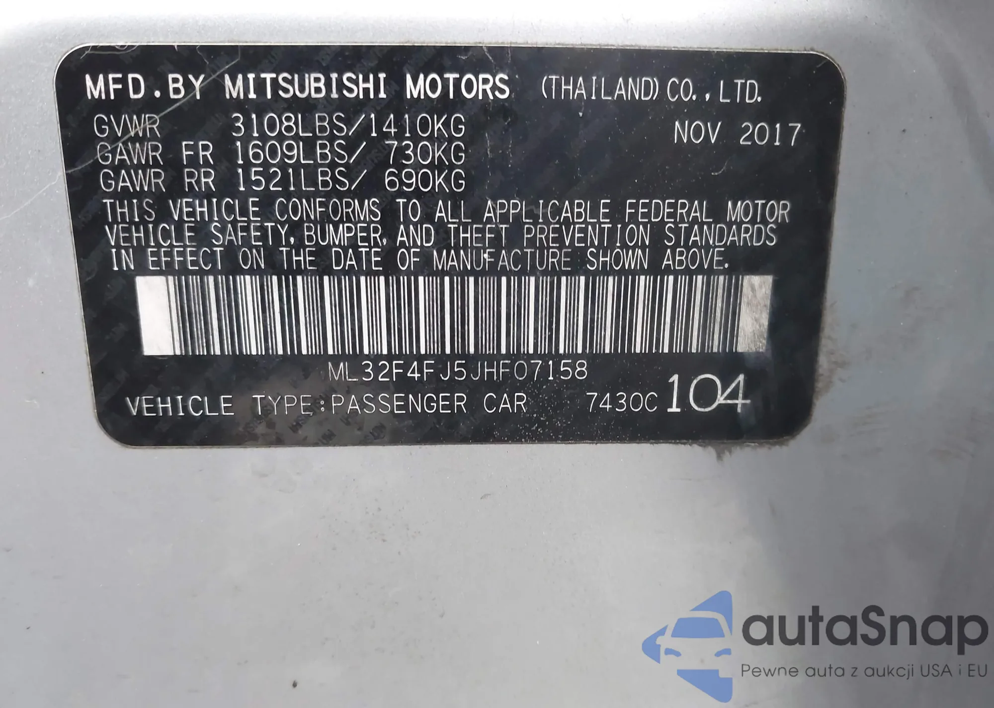 LOT: 44109663 VIN: ML32F4FJ5JHF07158