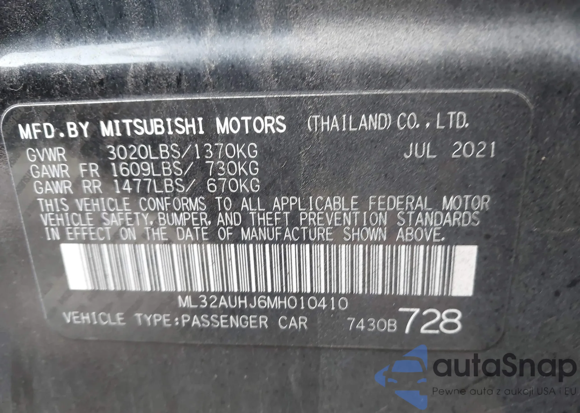 LOT: 43807154 VIN: ML32AUHJ6MH010410