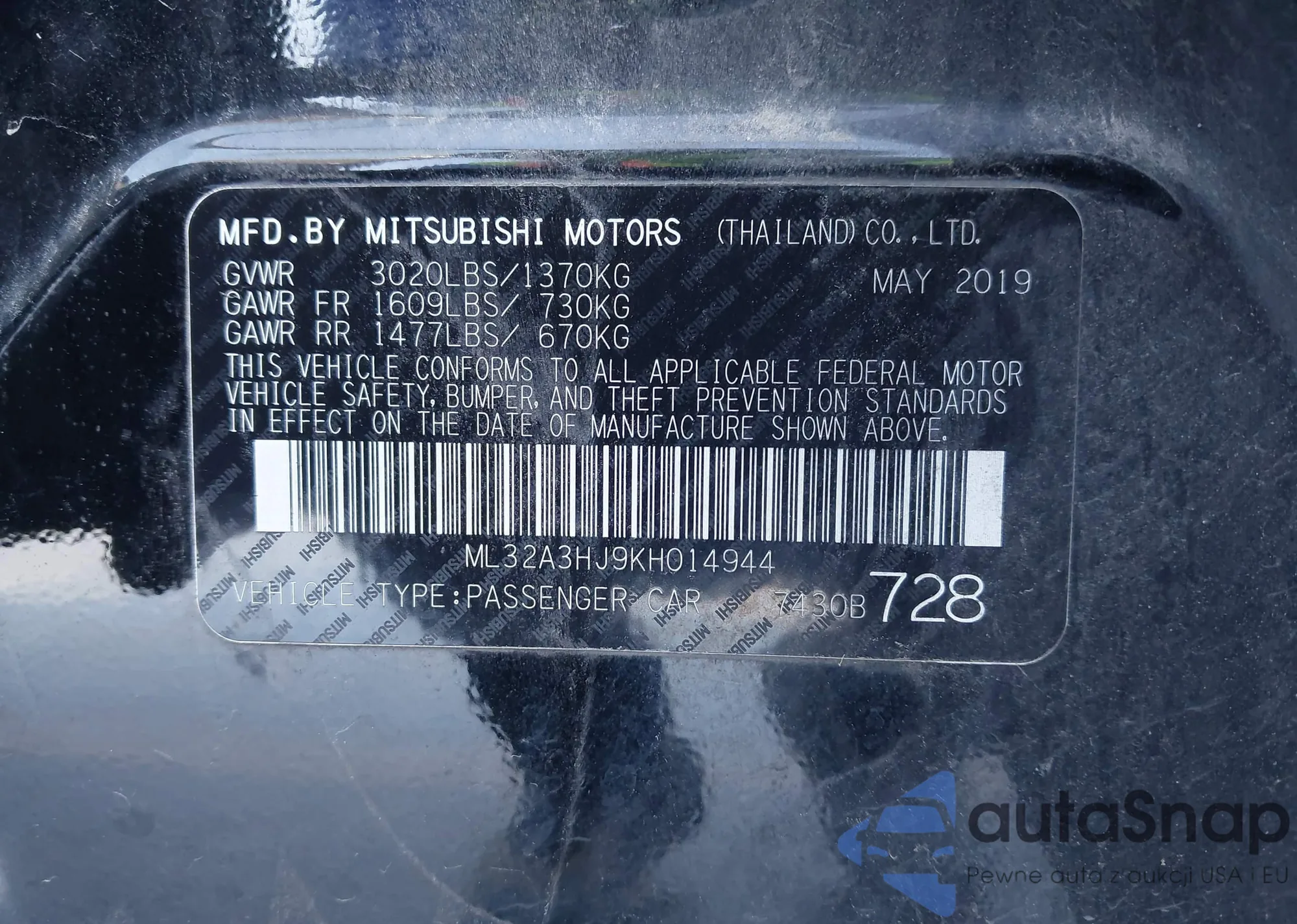 LOT: 43953541 VIN: ML32F3FJ0KHF11503