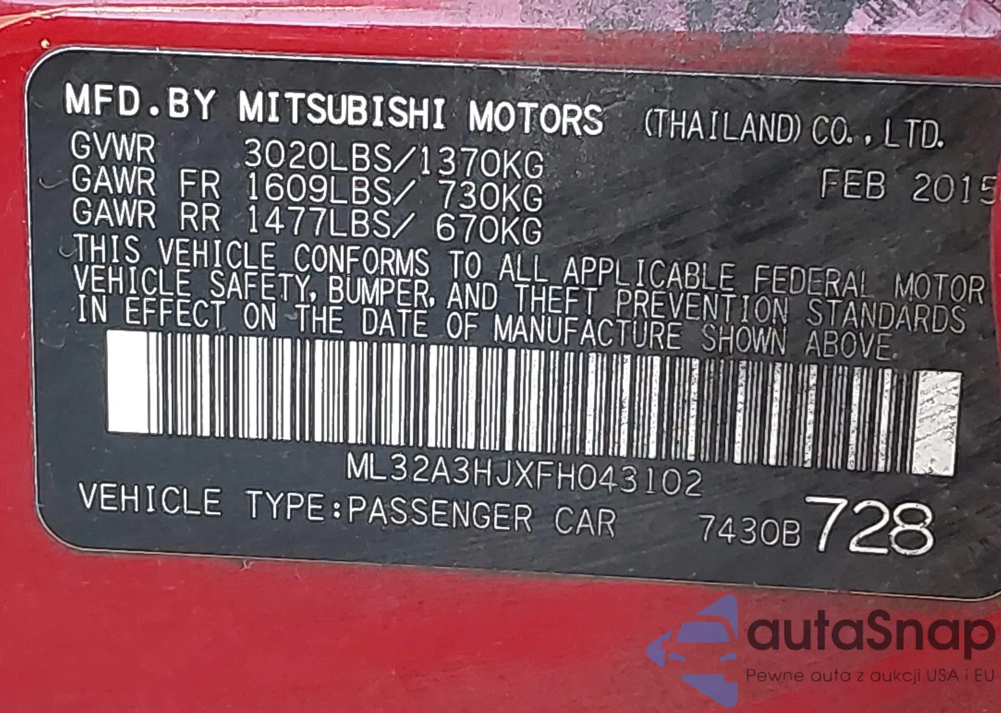 LOT: 44119487 VIN: ML32A3HJXFH043102