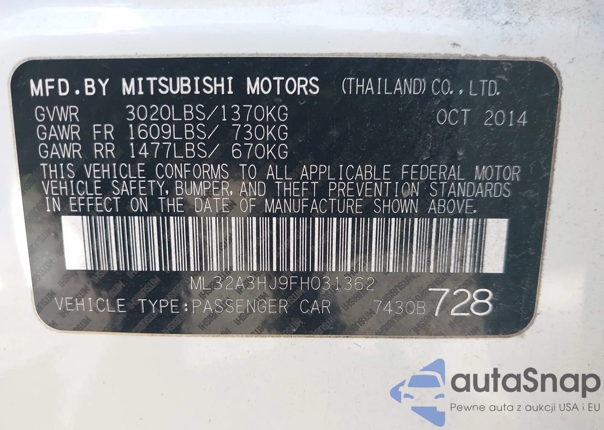 LOT: 44703080 VIN: ML32A3HJ9EH013698