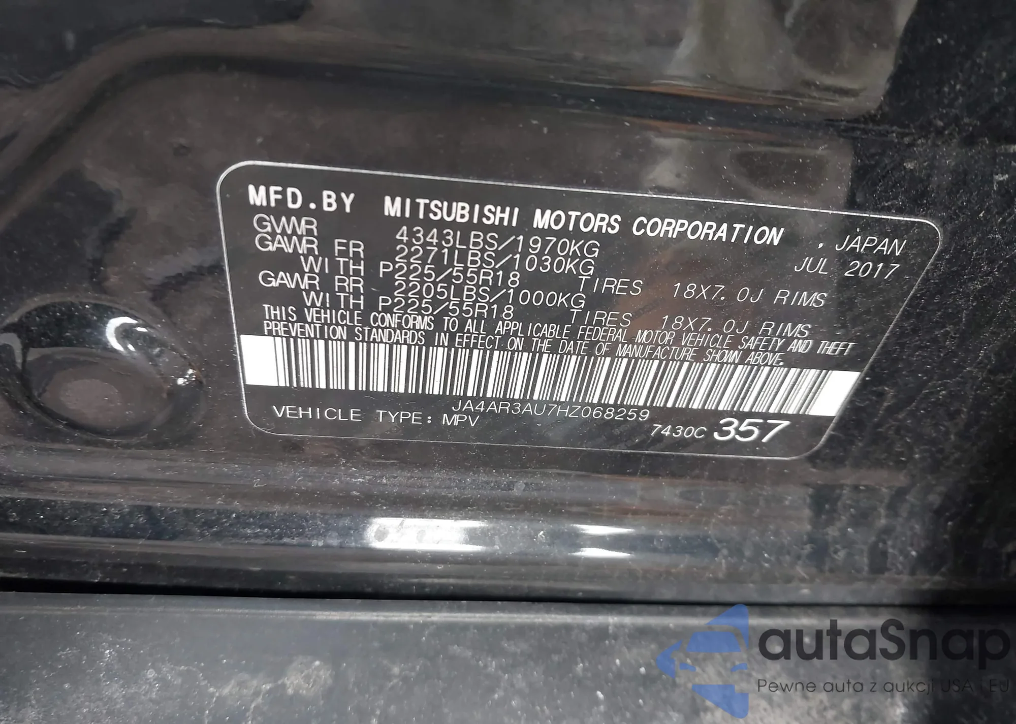 • VIN JA4AR3AU7HZ068259