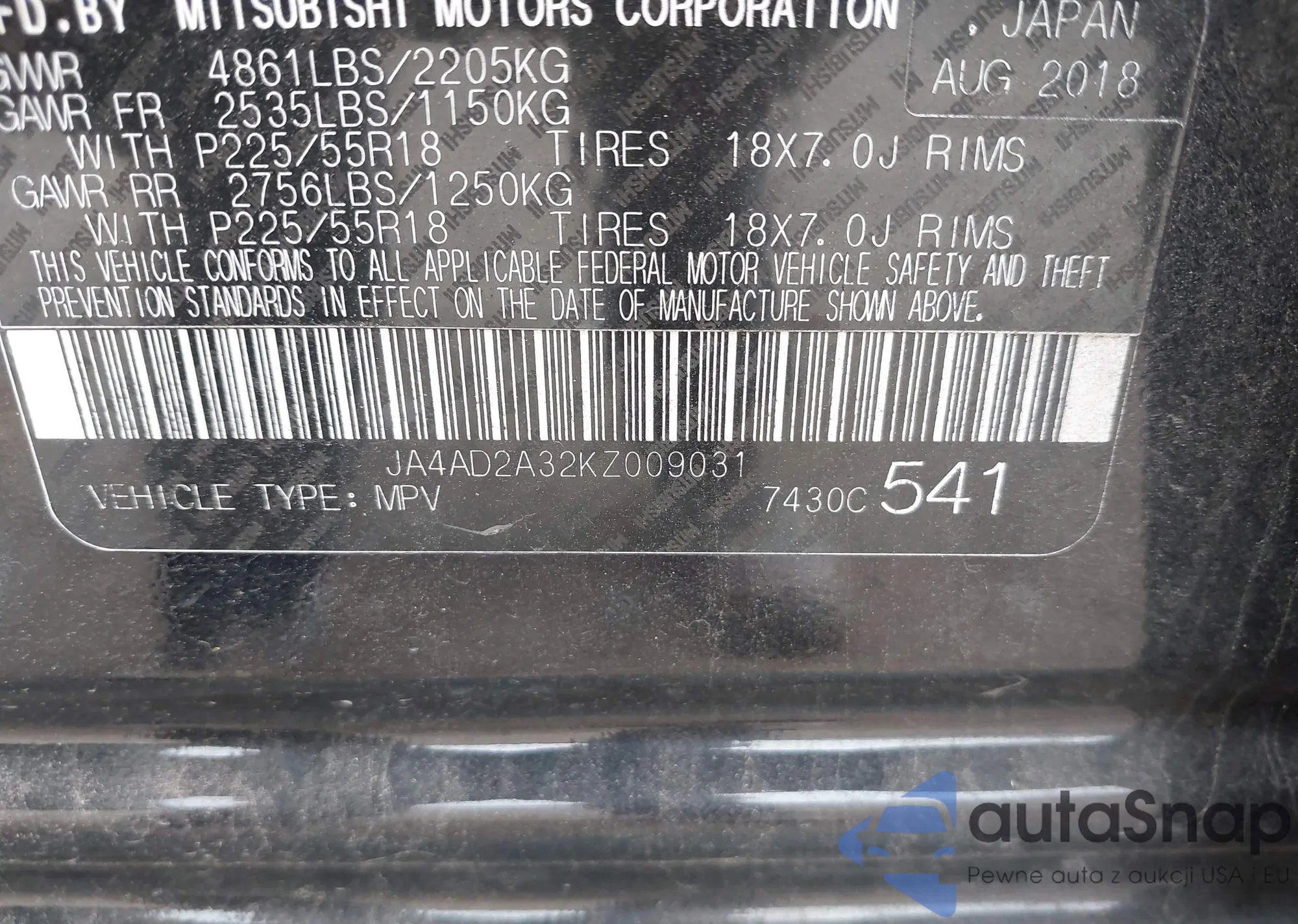 • VIN JA4J3UA81NZ059515
