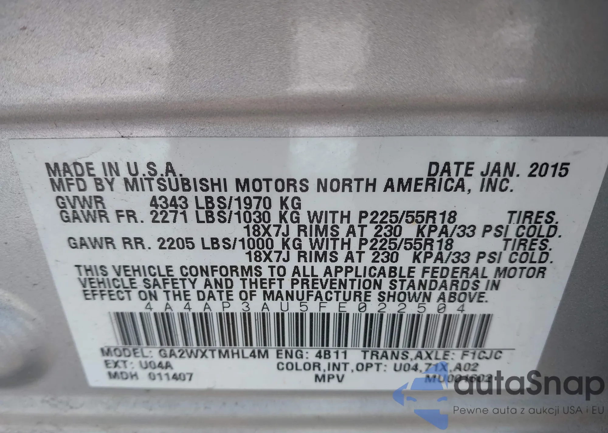 • VIN 4A4AP3AU5FE022504