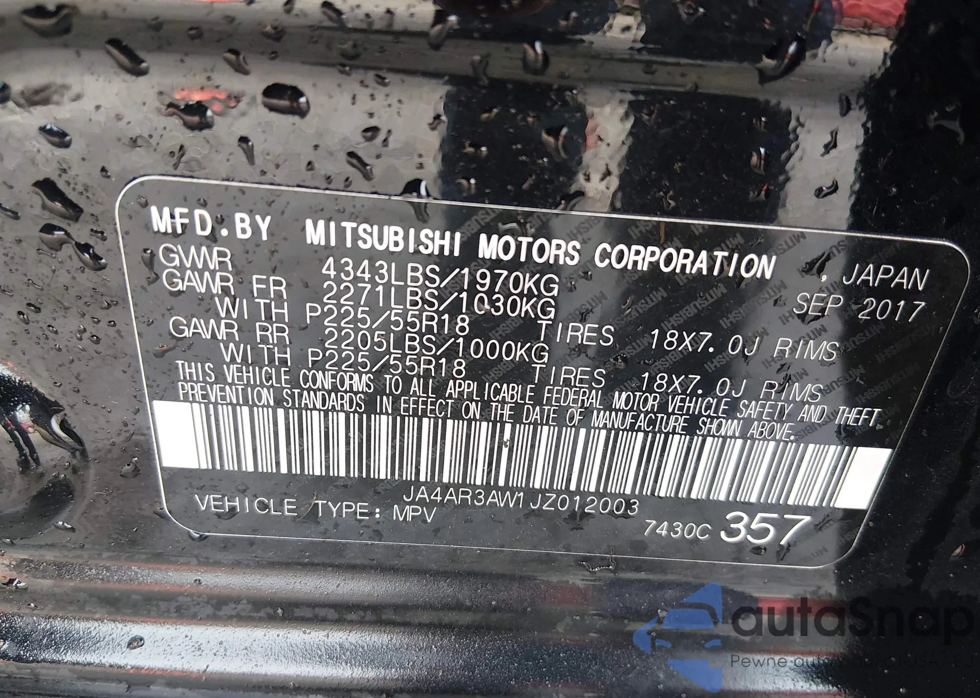 • VIN JA4AR3AU9HZ021220