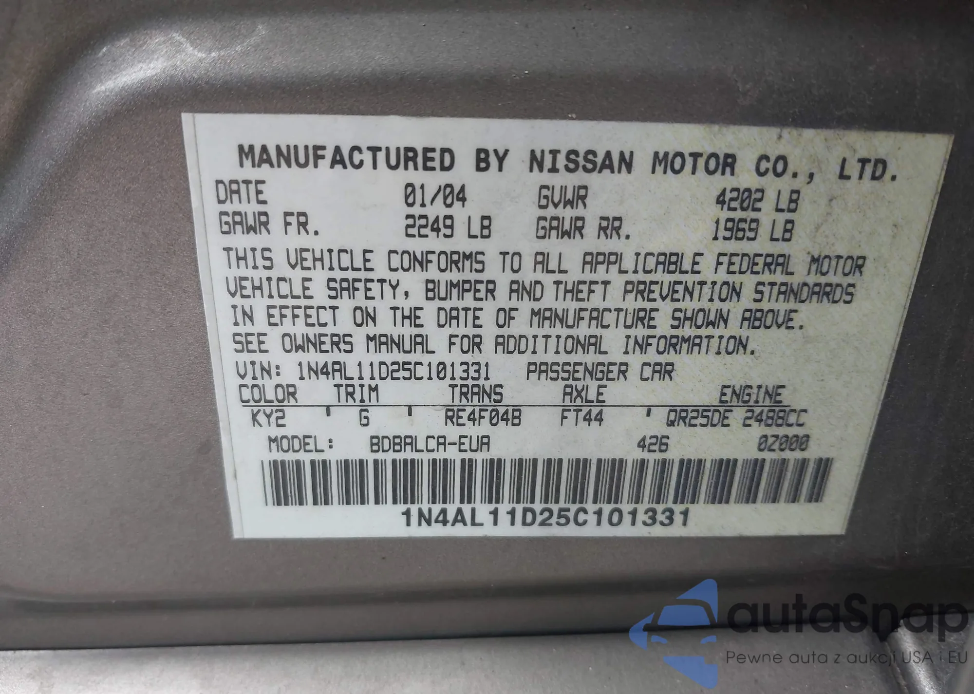Buy Nissan Altima III (L31) from USA