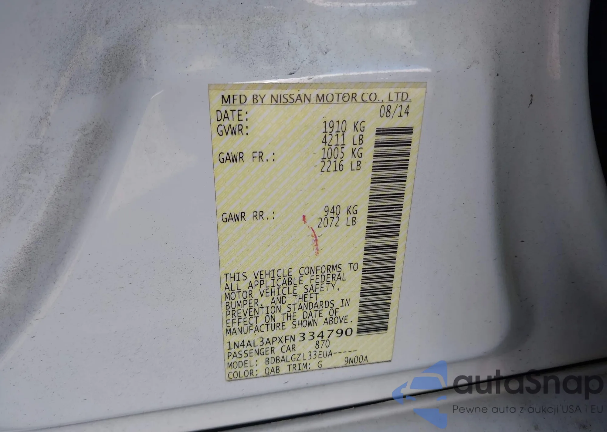 • VIN 1N4AL3APXFN334790
