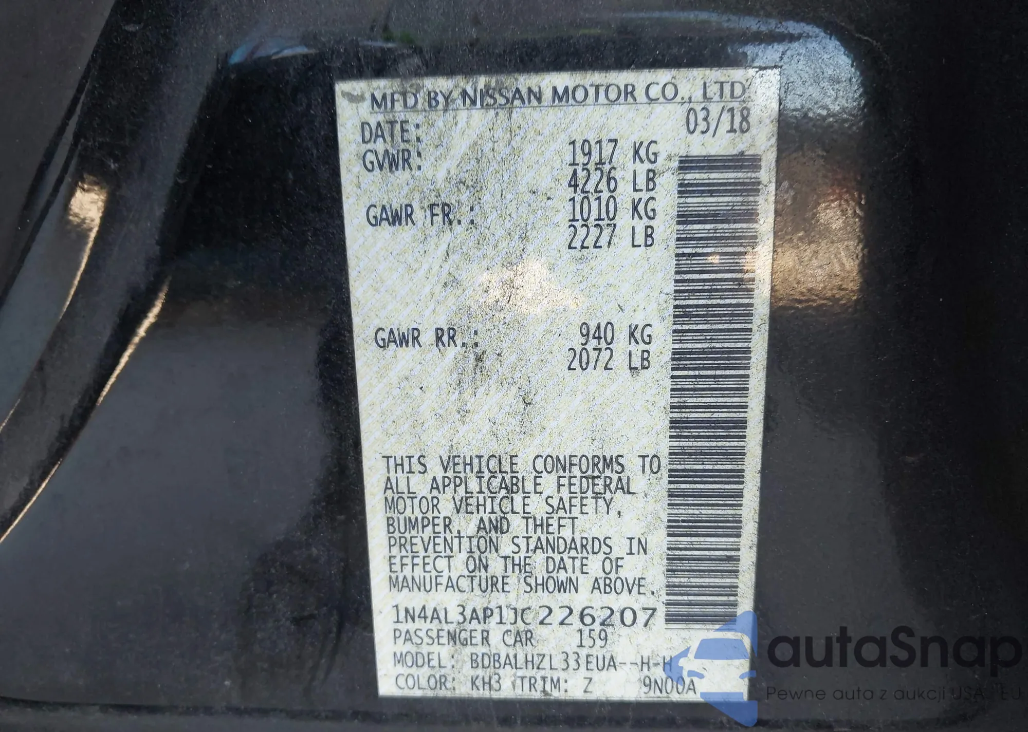 LOT: 44093428 VIN: 1N4AL3AP1JC226207