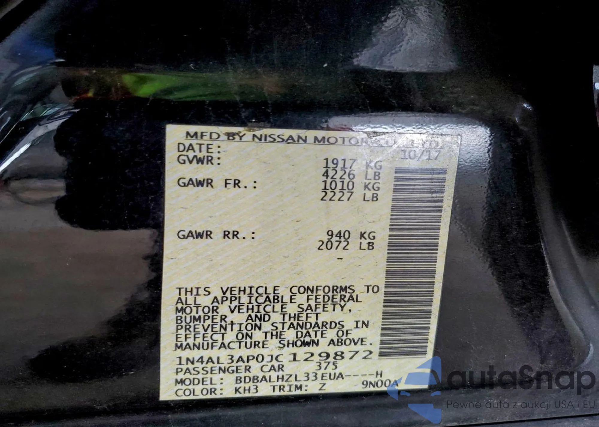 LOT: 98858115 VIN: 1N4AL3AP0JC129872