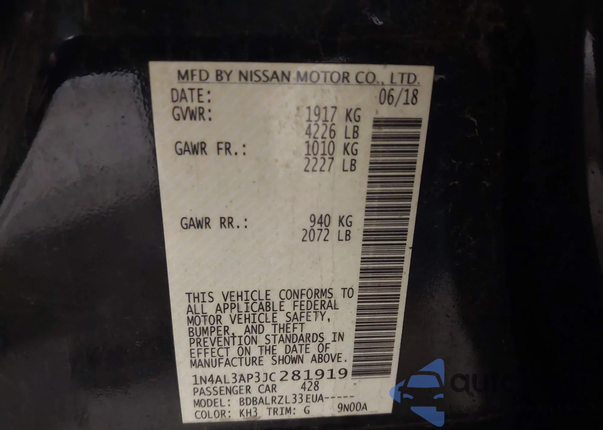 LOT: 43847647 VIN: 1N4AL3AP3JC281919