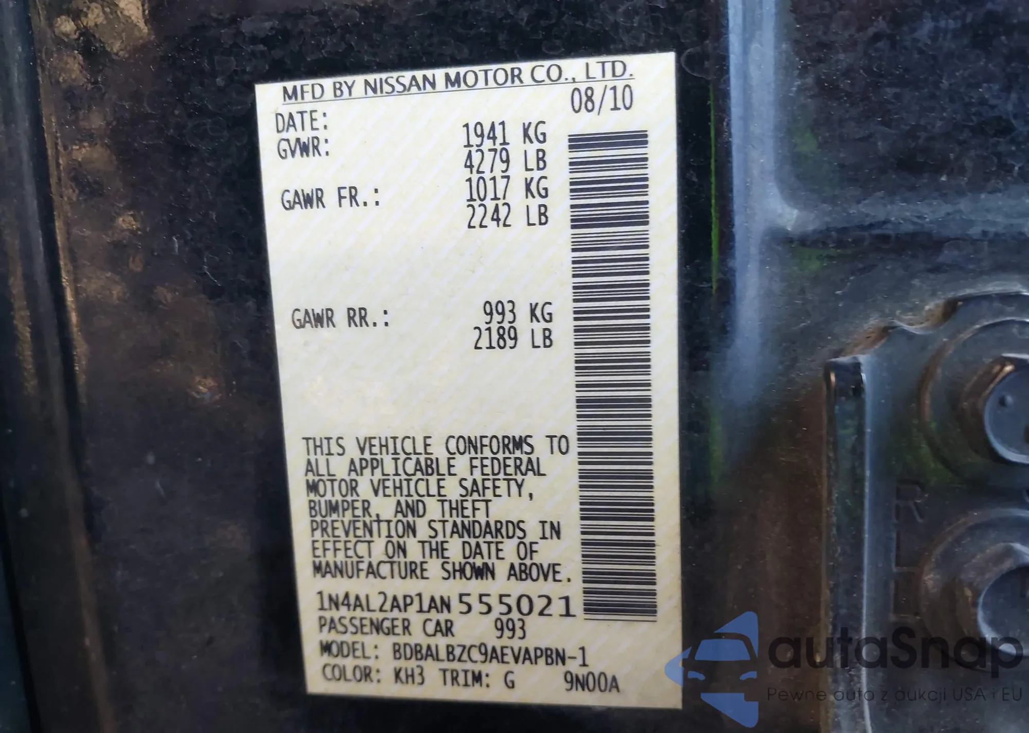 LOT: 43921136 VIN: 1N4AL2AP1AN555021