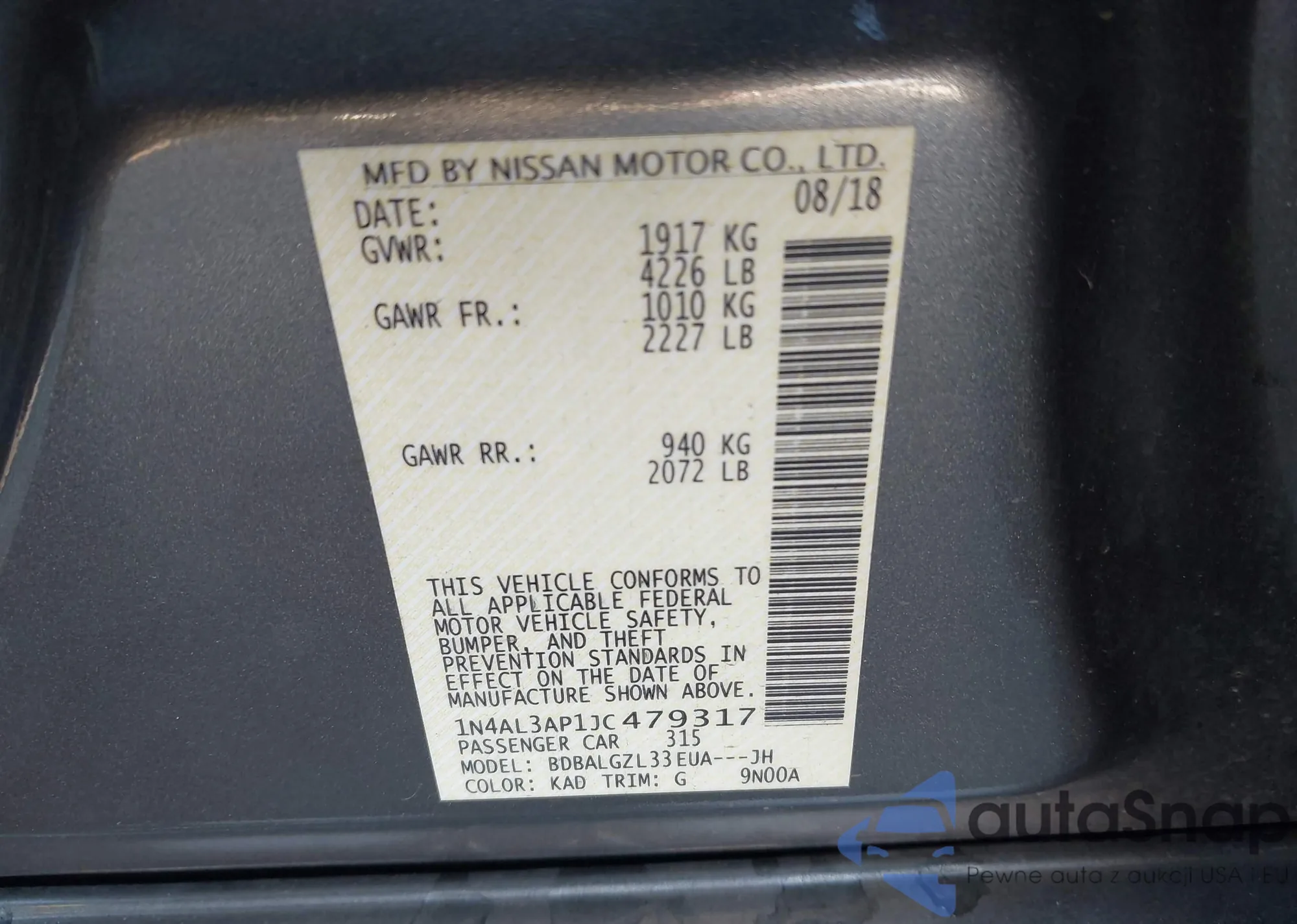 LOT: 44140755 VIN: 1N4AL3AP1JC479317