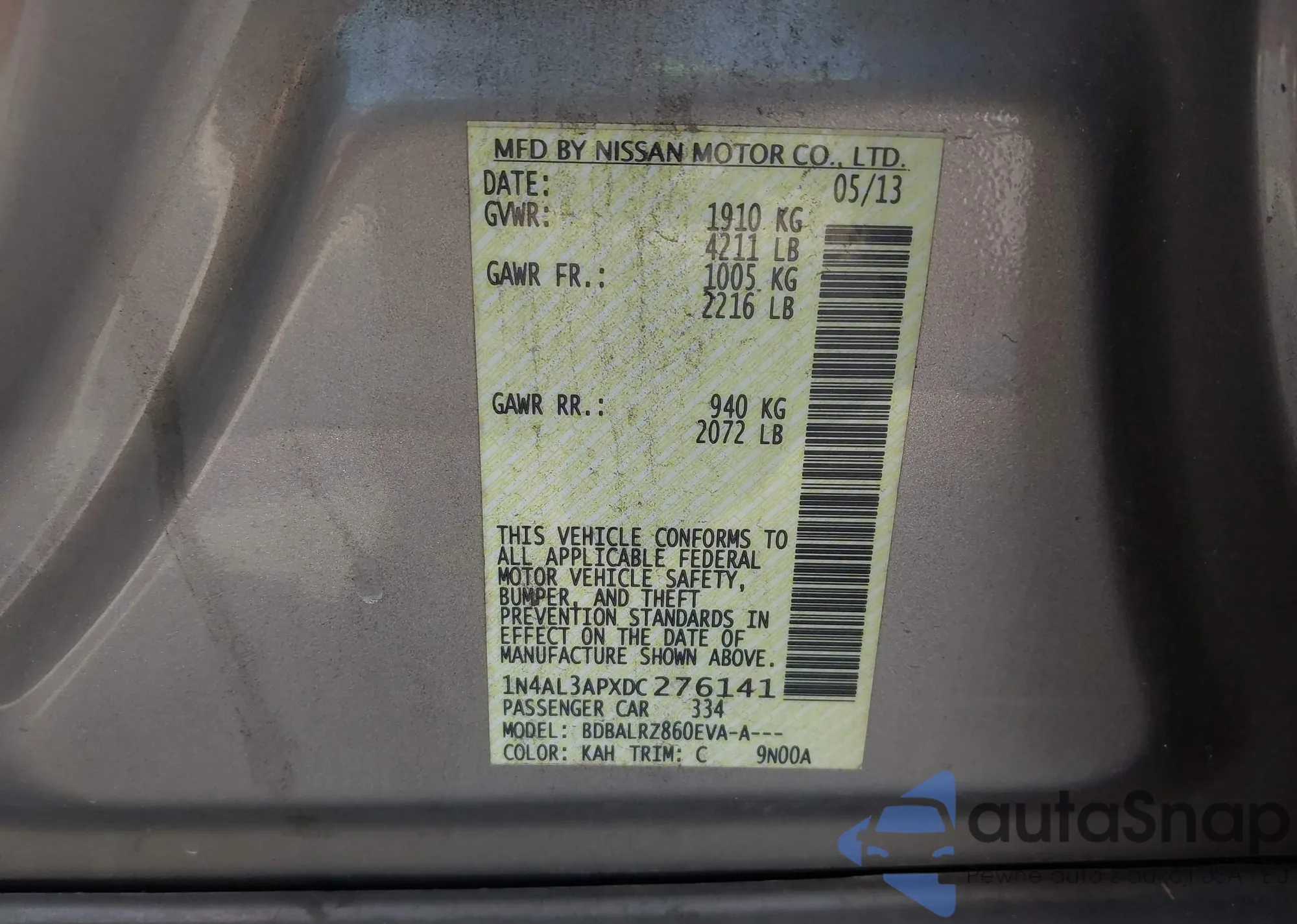 LOT: 42045350 VIN: 1N4AL3APXDC276141