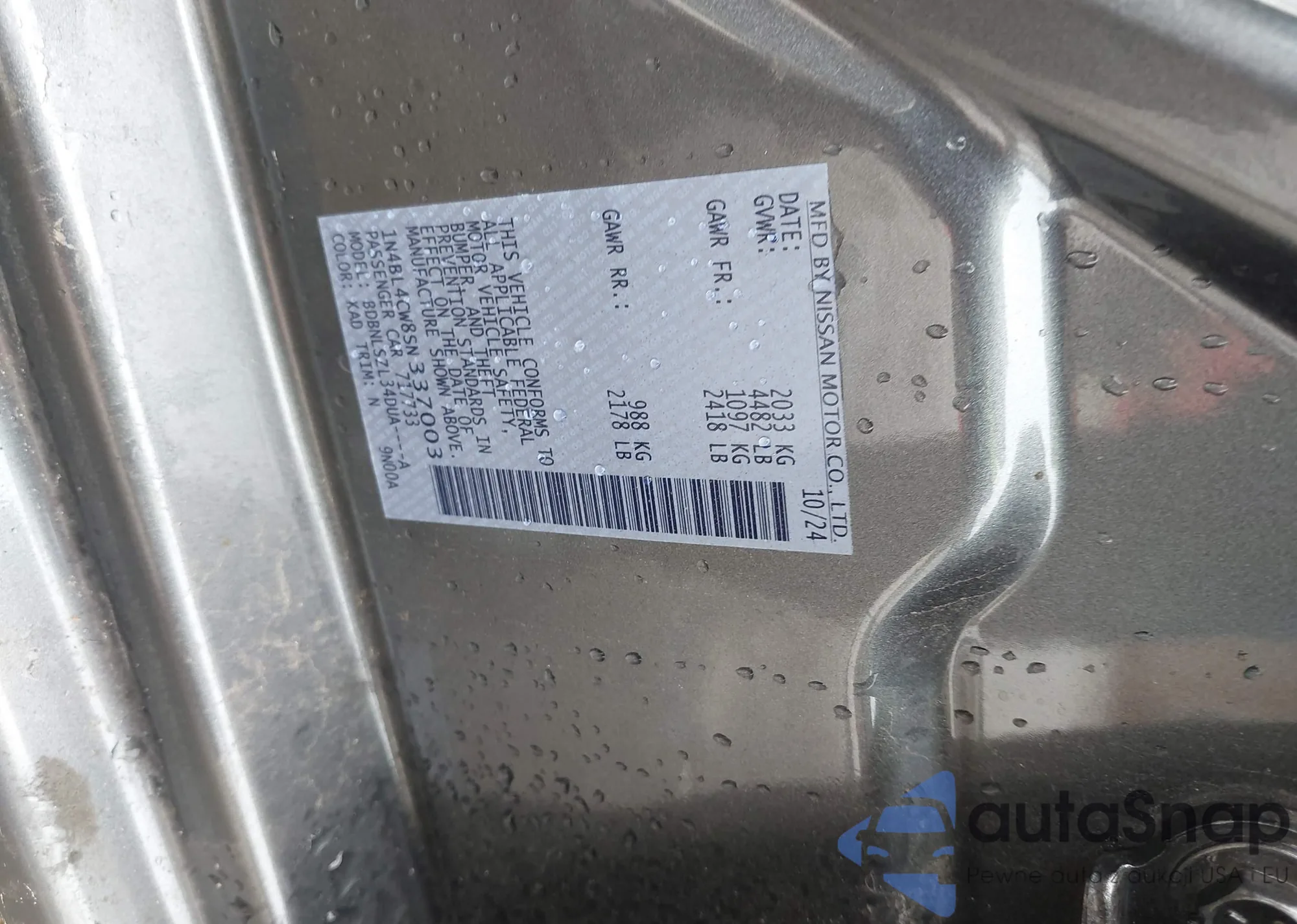 LOT: 43031292 VIN: 1N4BL4CW8SN337003