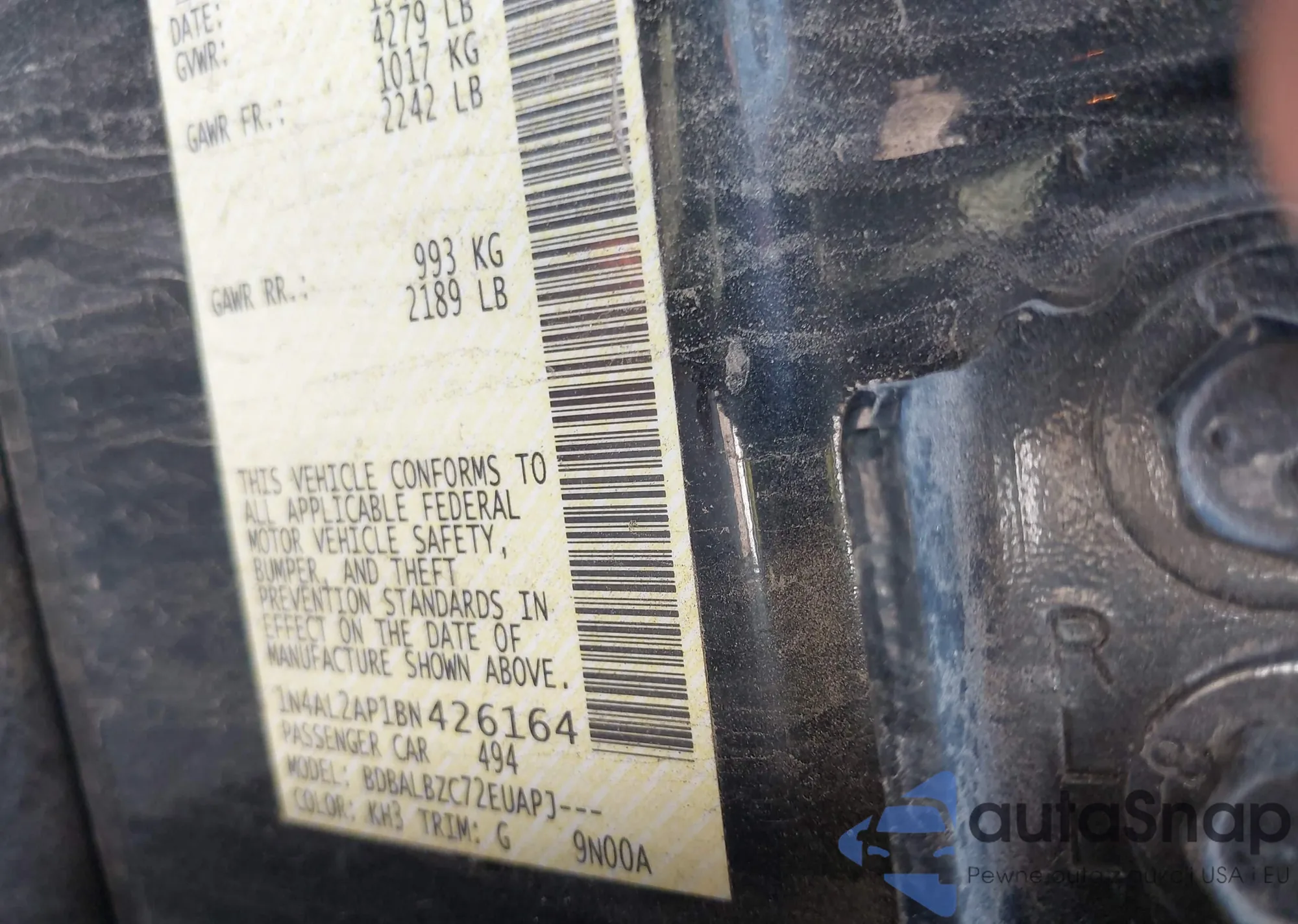 • VIN 1N4AL2AP1BN426164