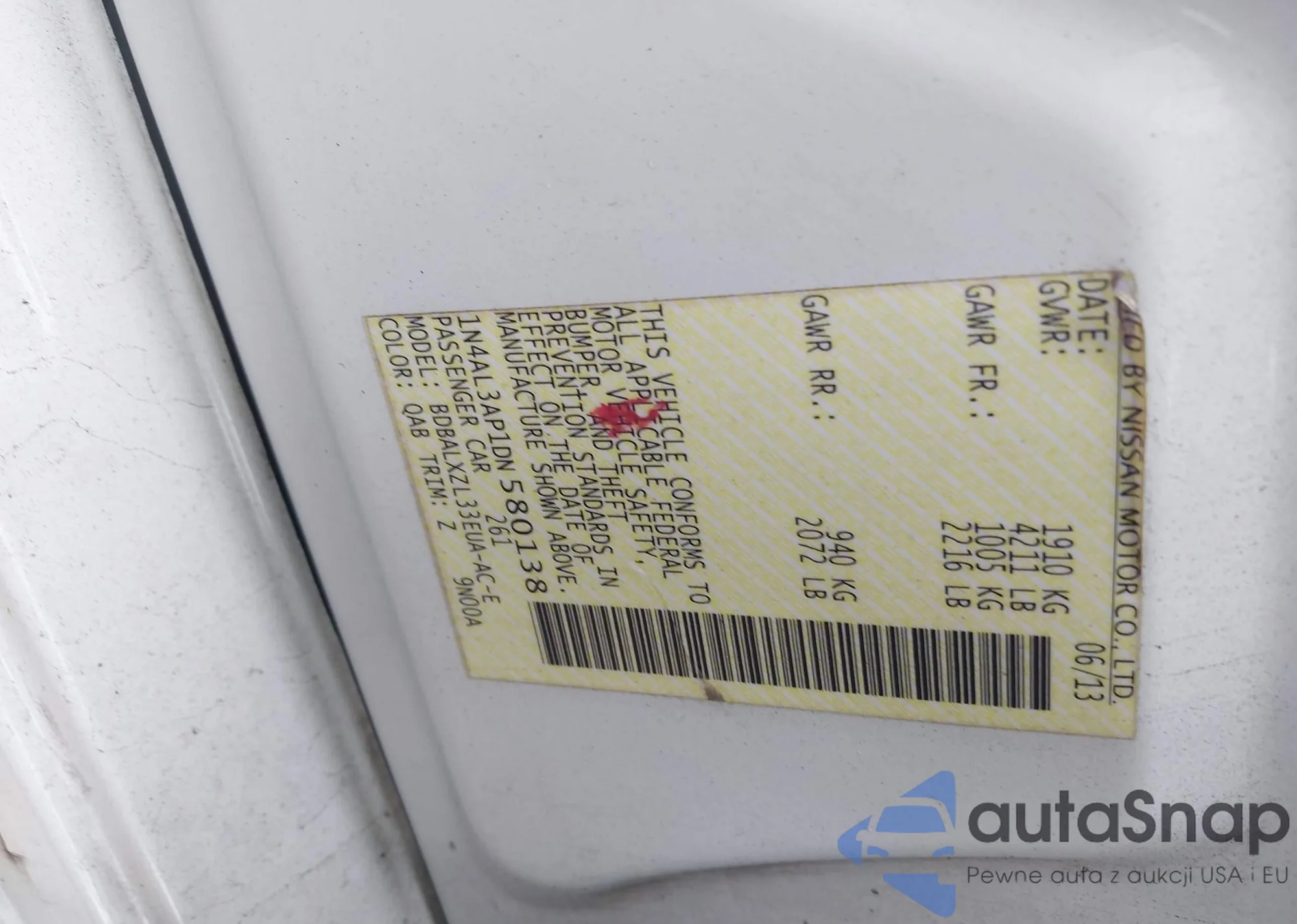 LOT: 44066840 VIN: 1N4AL3AP1DN580138