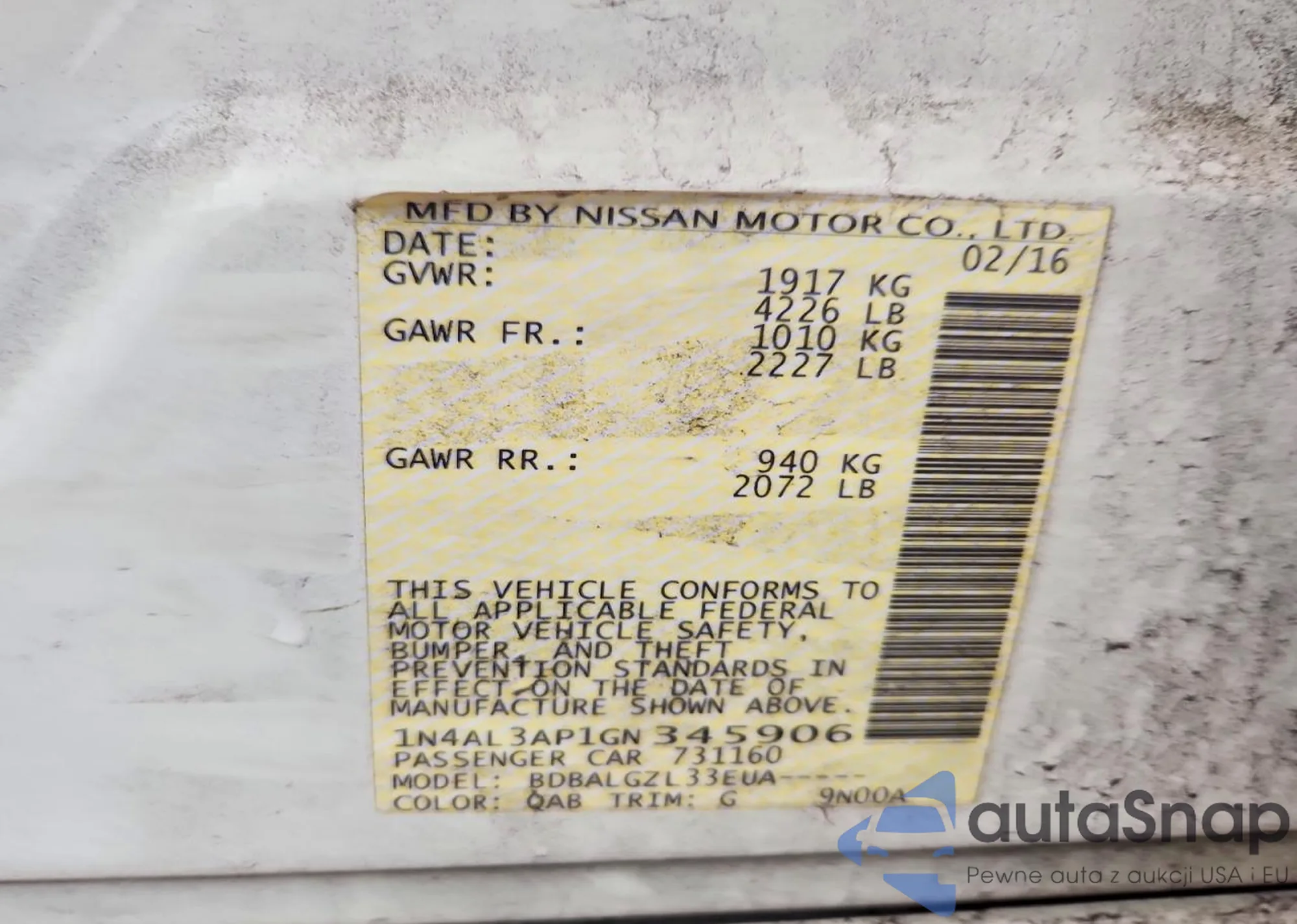 LOT: 42010976 VIN: 1N4AL3AP1GN345906