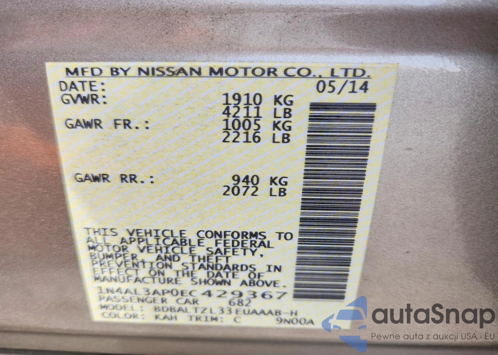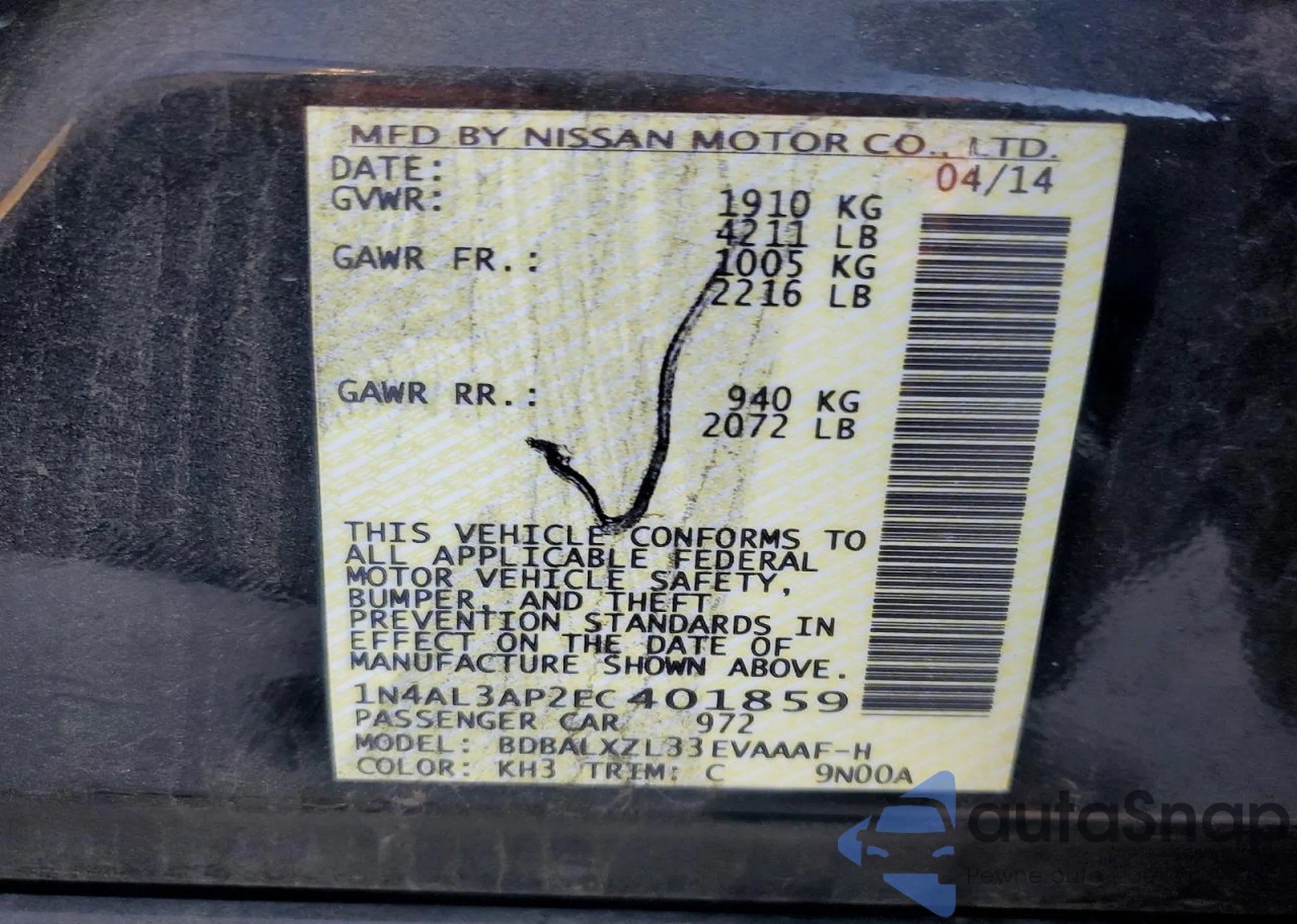 LOT: 79637285 VIN: 1N4AL3AP2EC401859