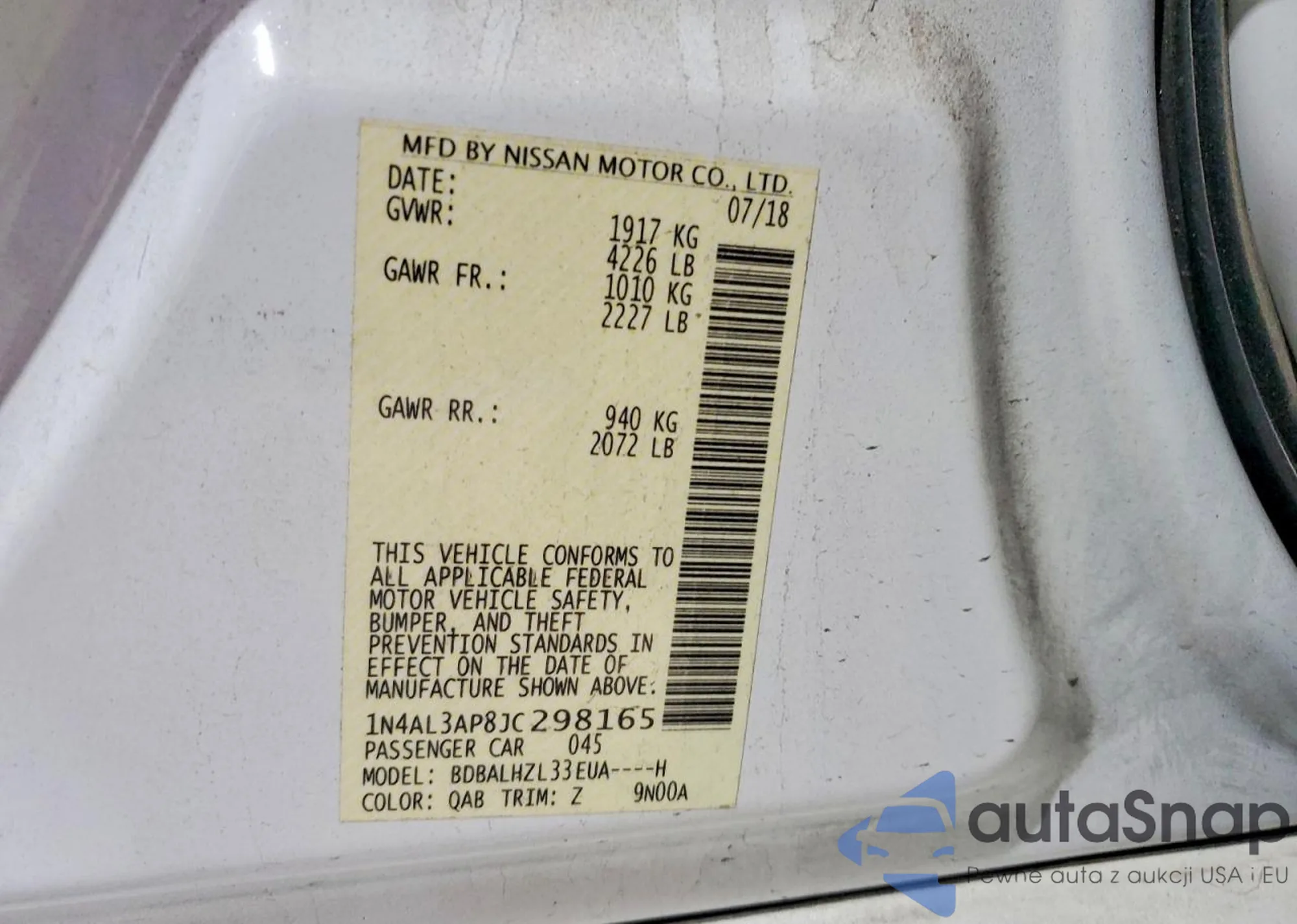 LOT: 79608265 VIN: 1N4AL3AP8JC298165