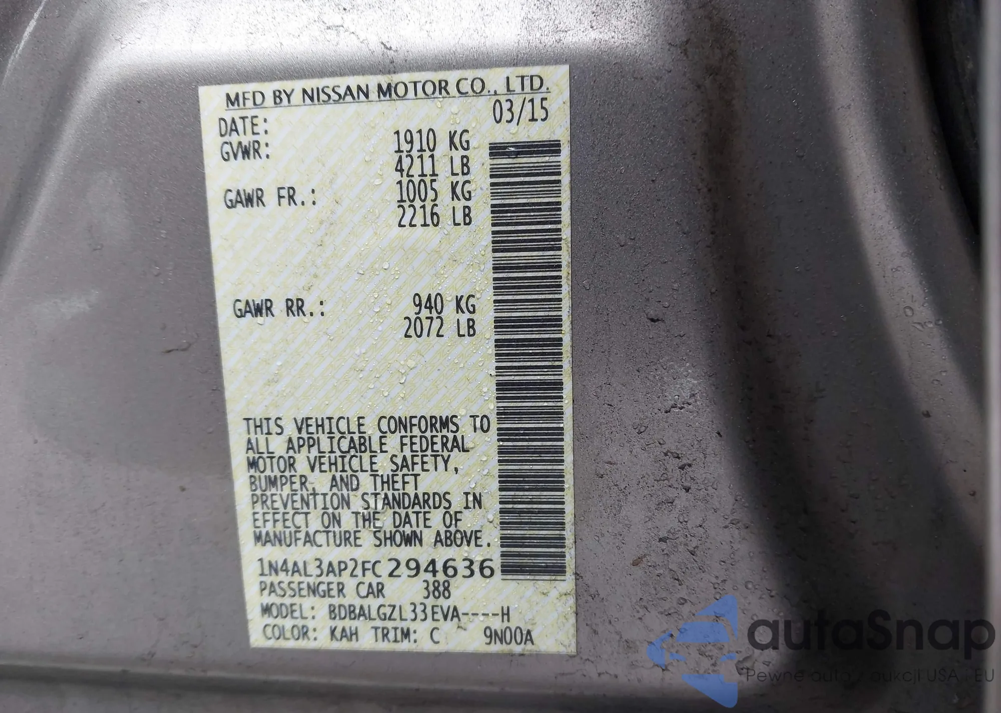 LOT: 44397823 VIN: 1N4AL3AP2FC294636