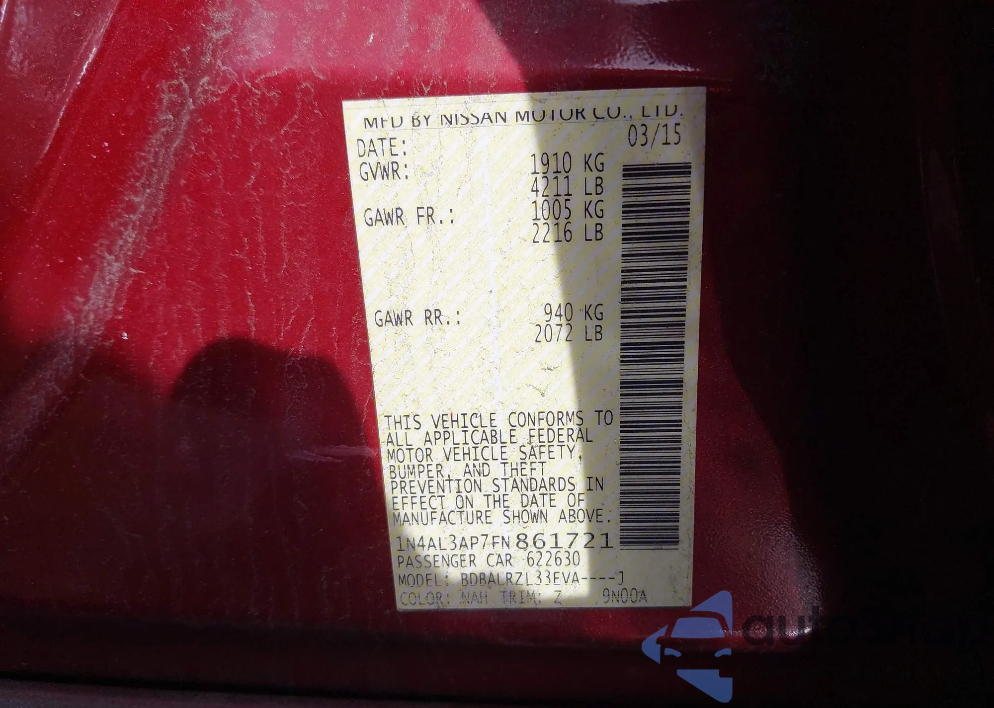 LOT: 44534604 VIN: 1N4AL3AP7FN307756