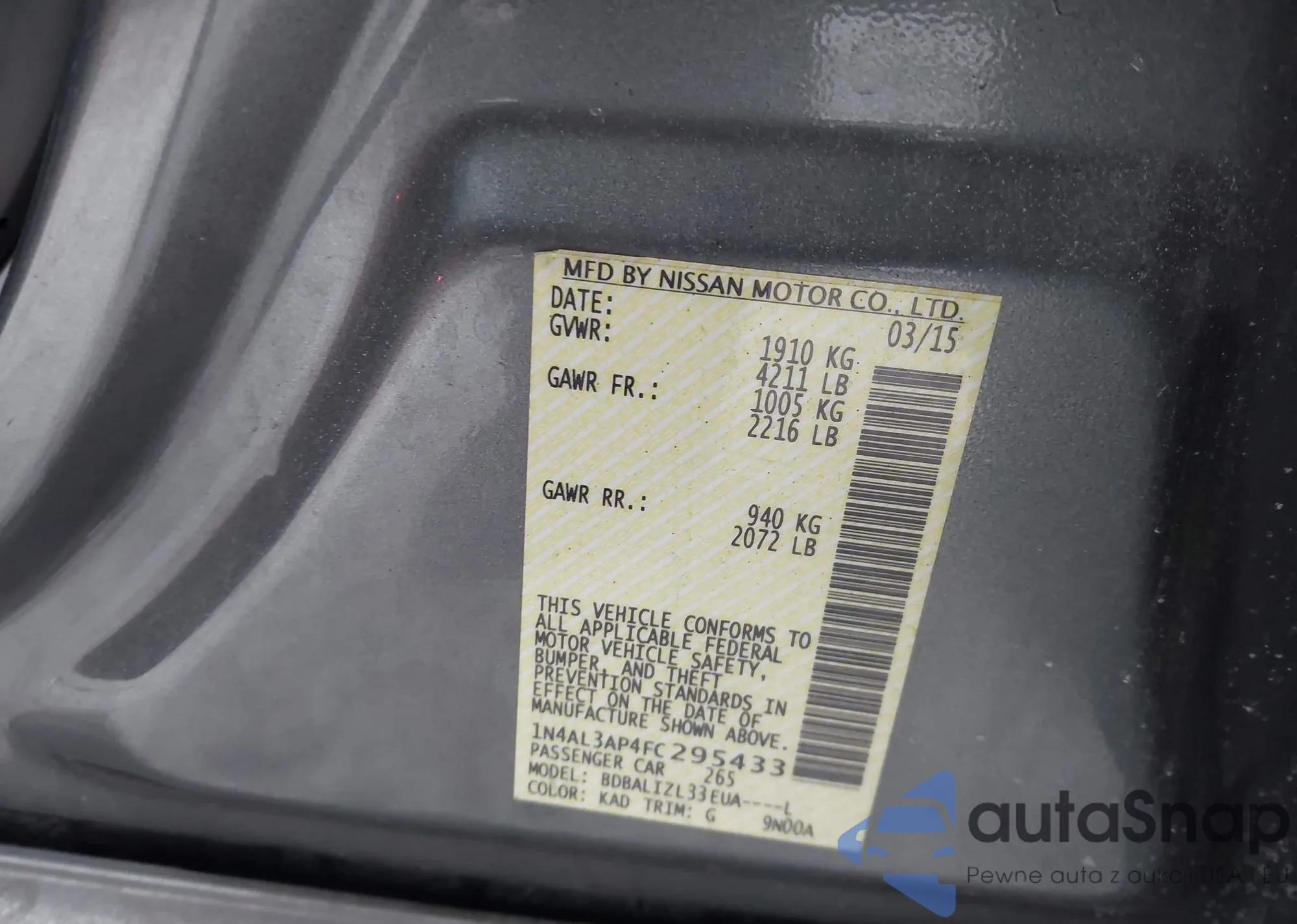 LOT: 43908184 VIN: 1N4AL3AP4FC295433