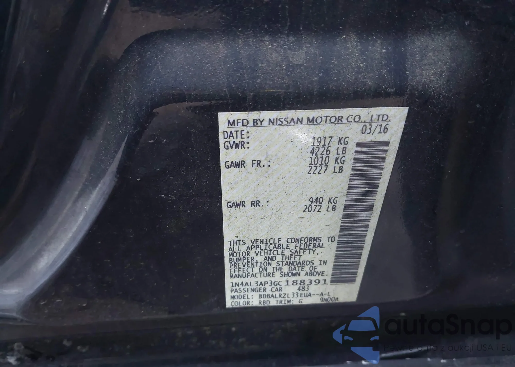 • VIN 1N4AL3AP3GC188391