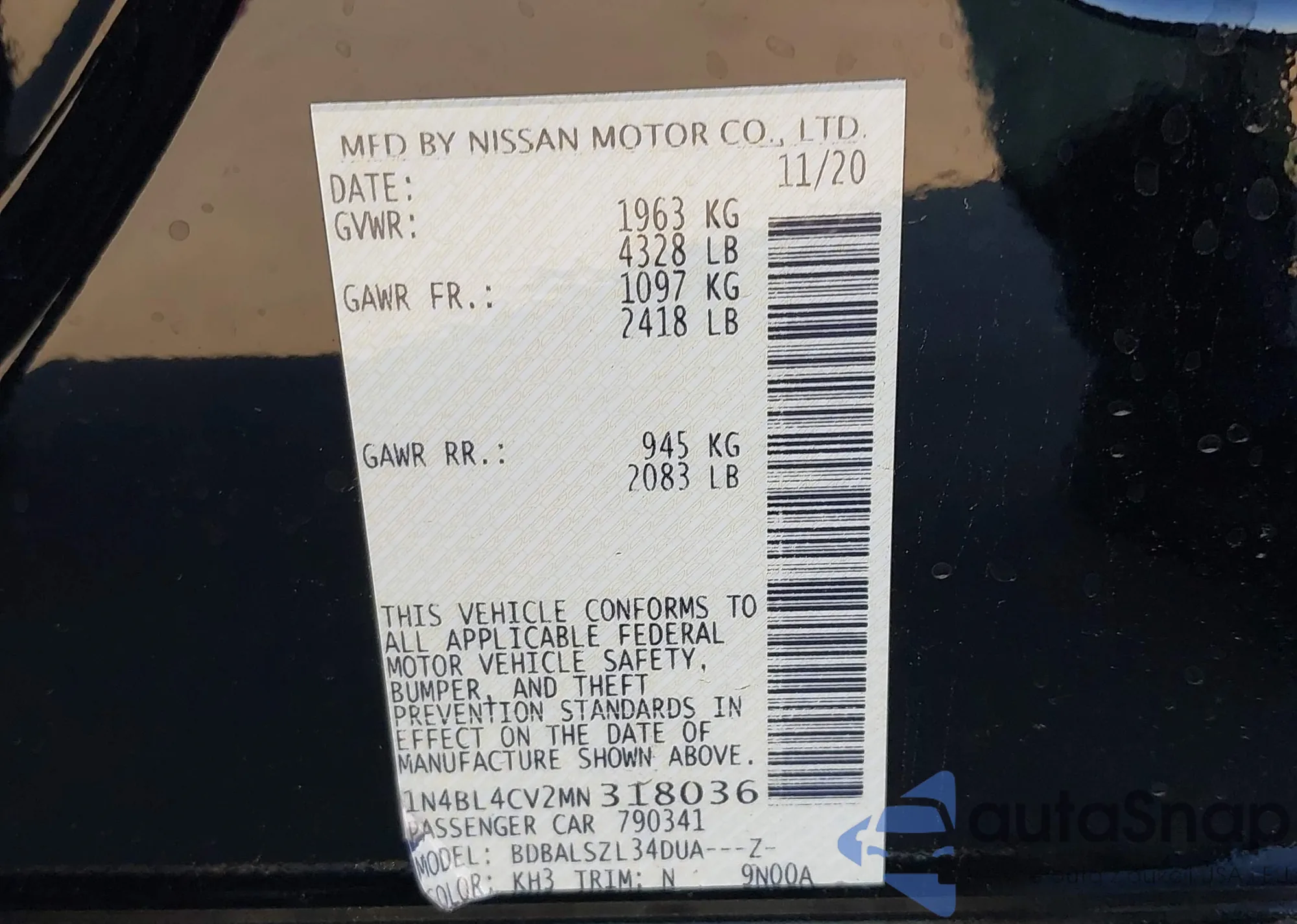 • VIN 1N4BL4CV2MN318036