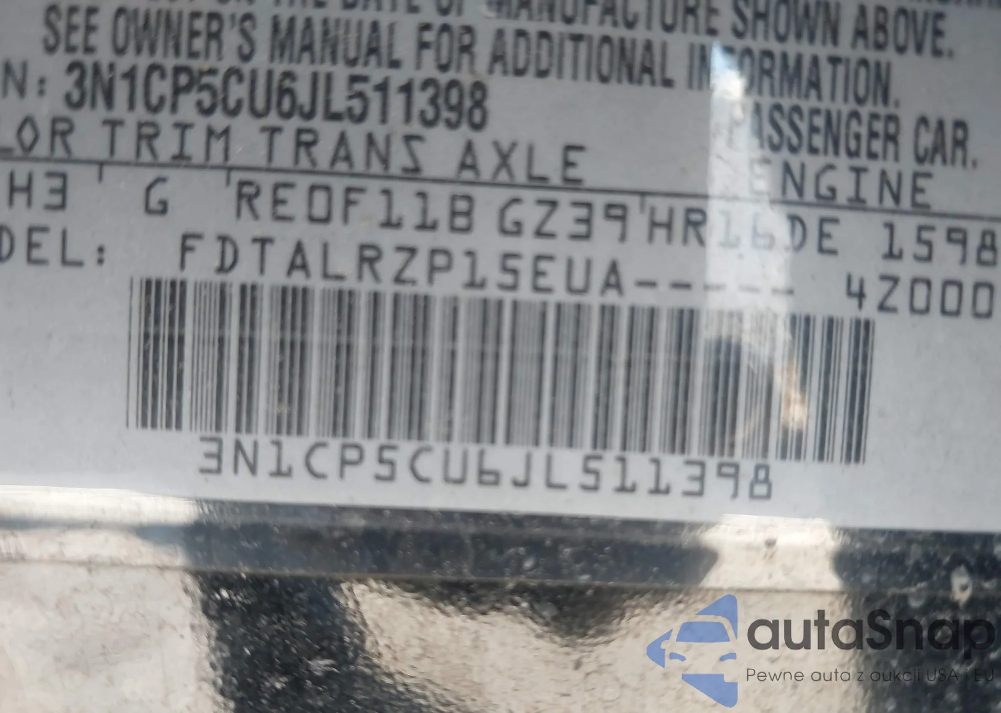 • VIN 3N1CP5CU6JL511398