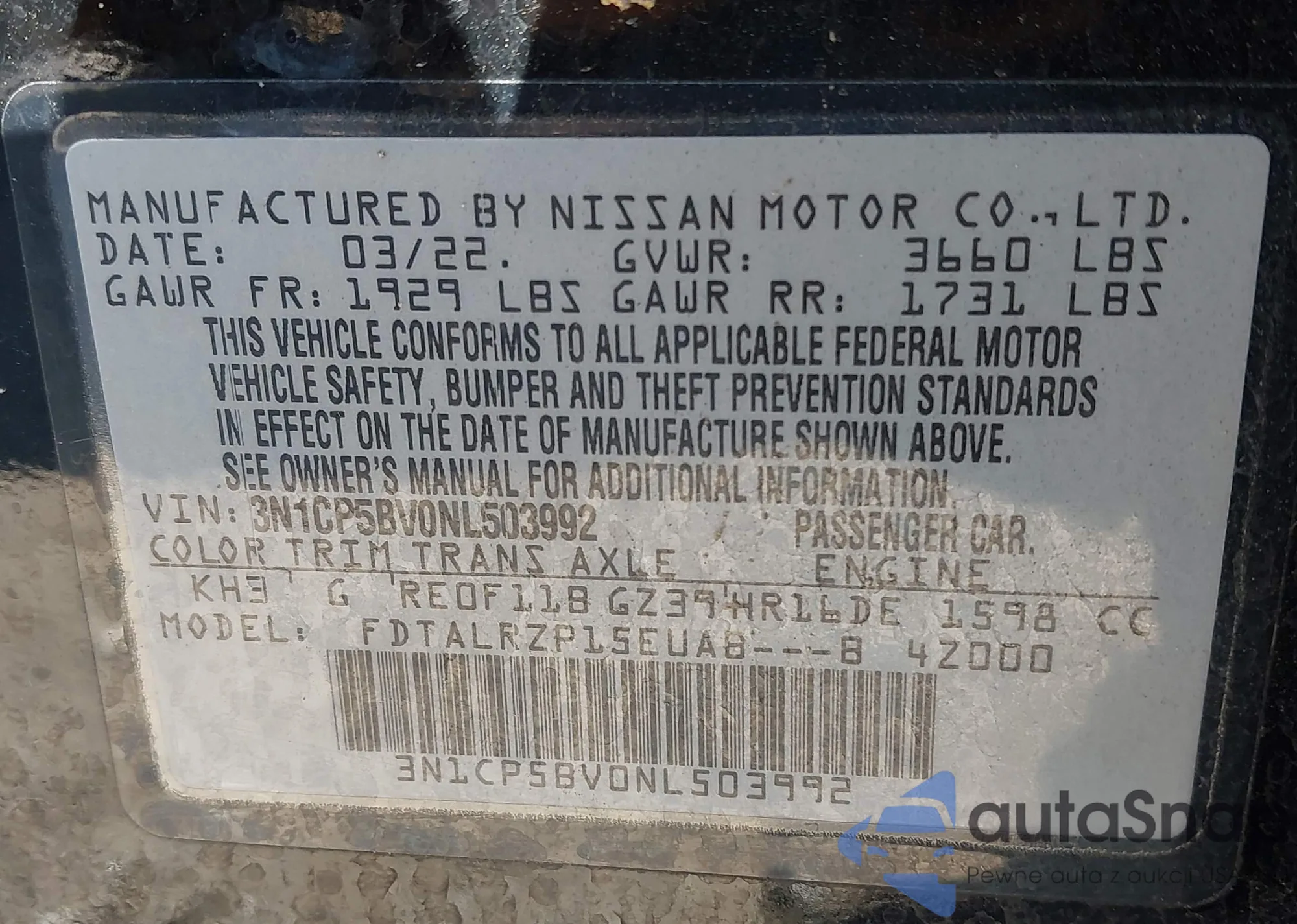 • VIN 3N1CP5BV0NL503992