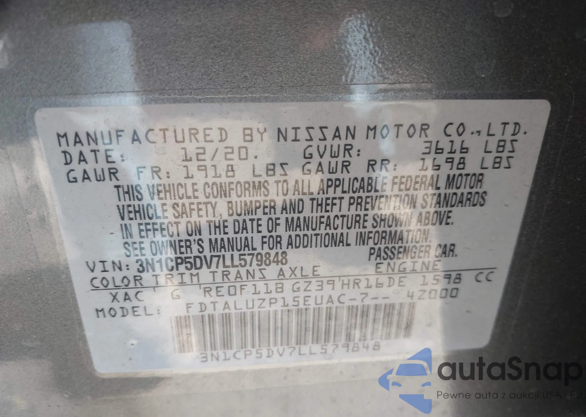 • VIN 3N1CP5DV7LL579848