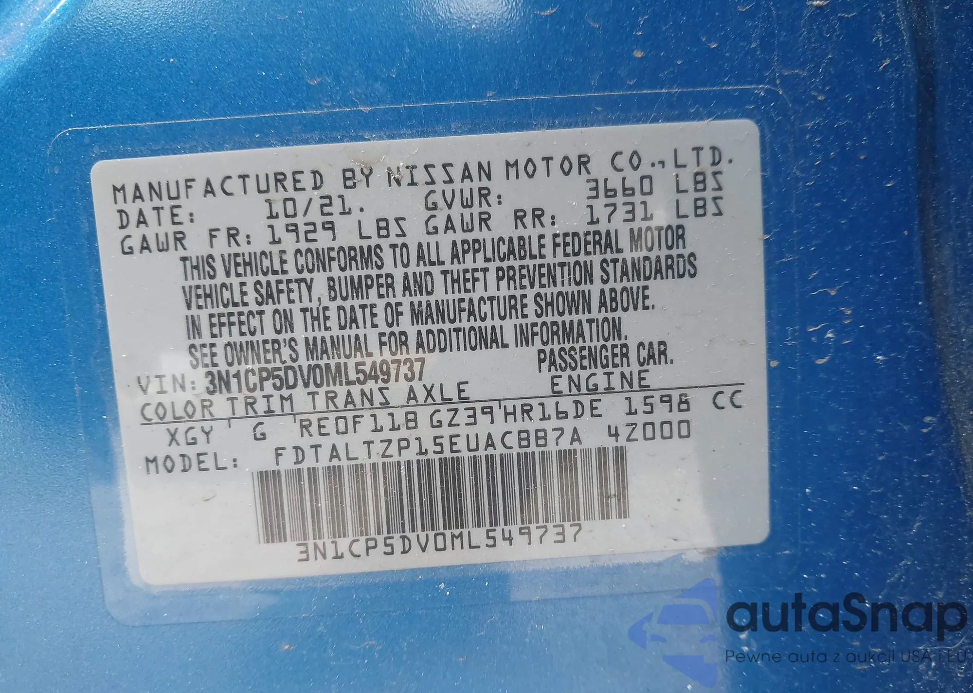• VIN 3N1CP5DV0ML549737