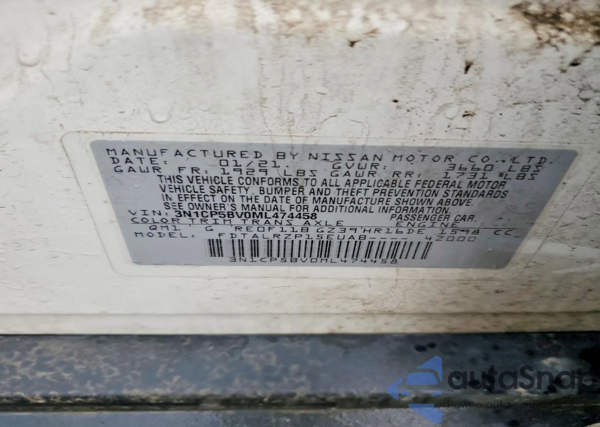 • VIN 3N1CP5BV0ML474458