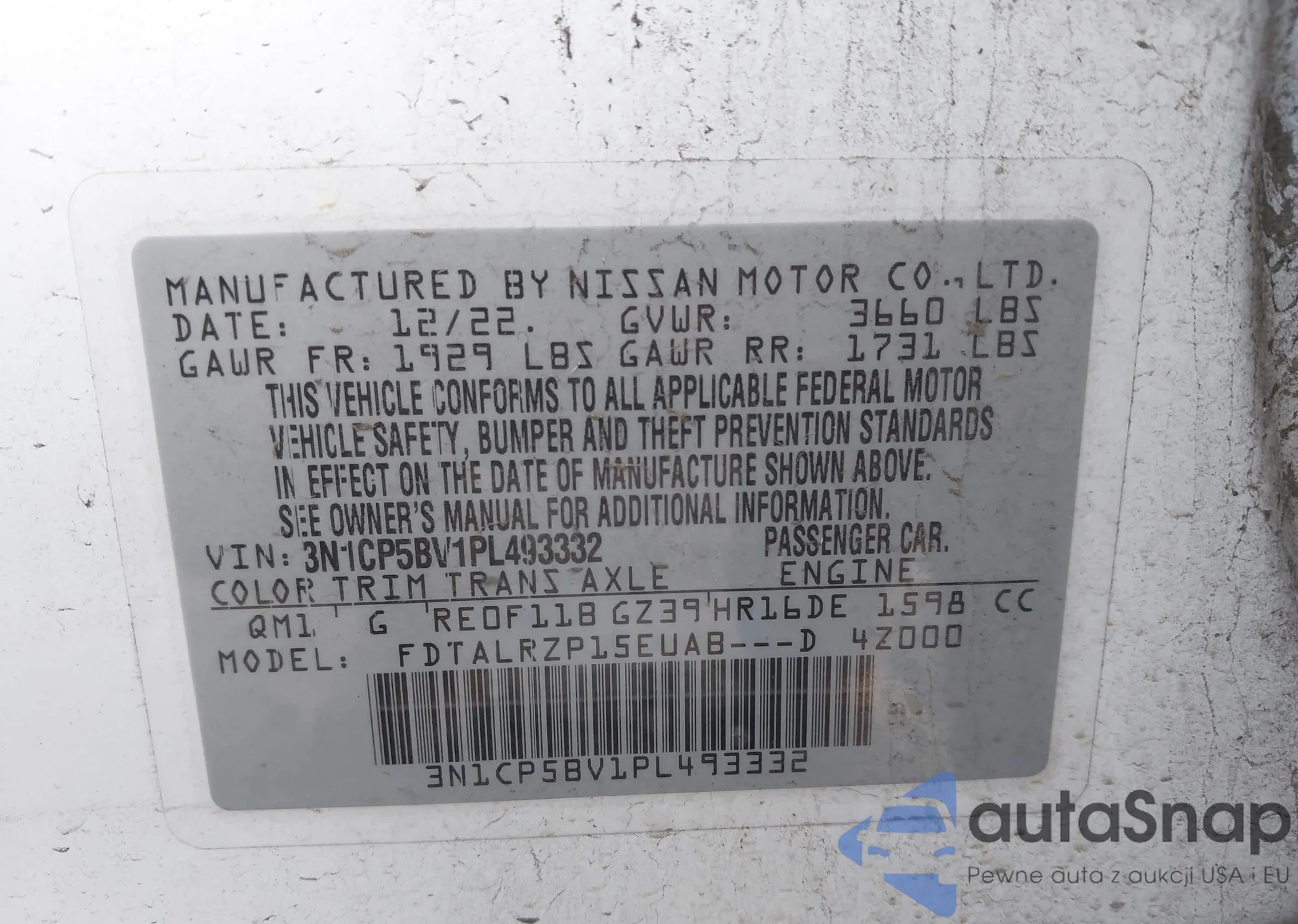 • VIN 3N1CP5BV1PL493332