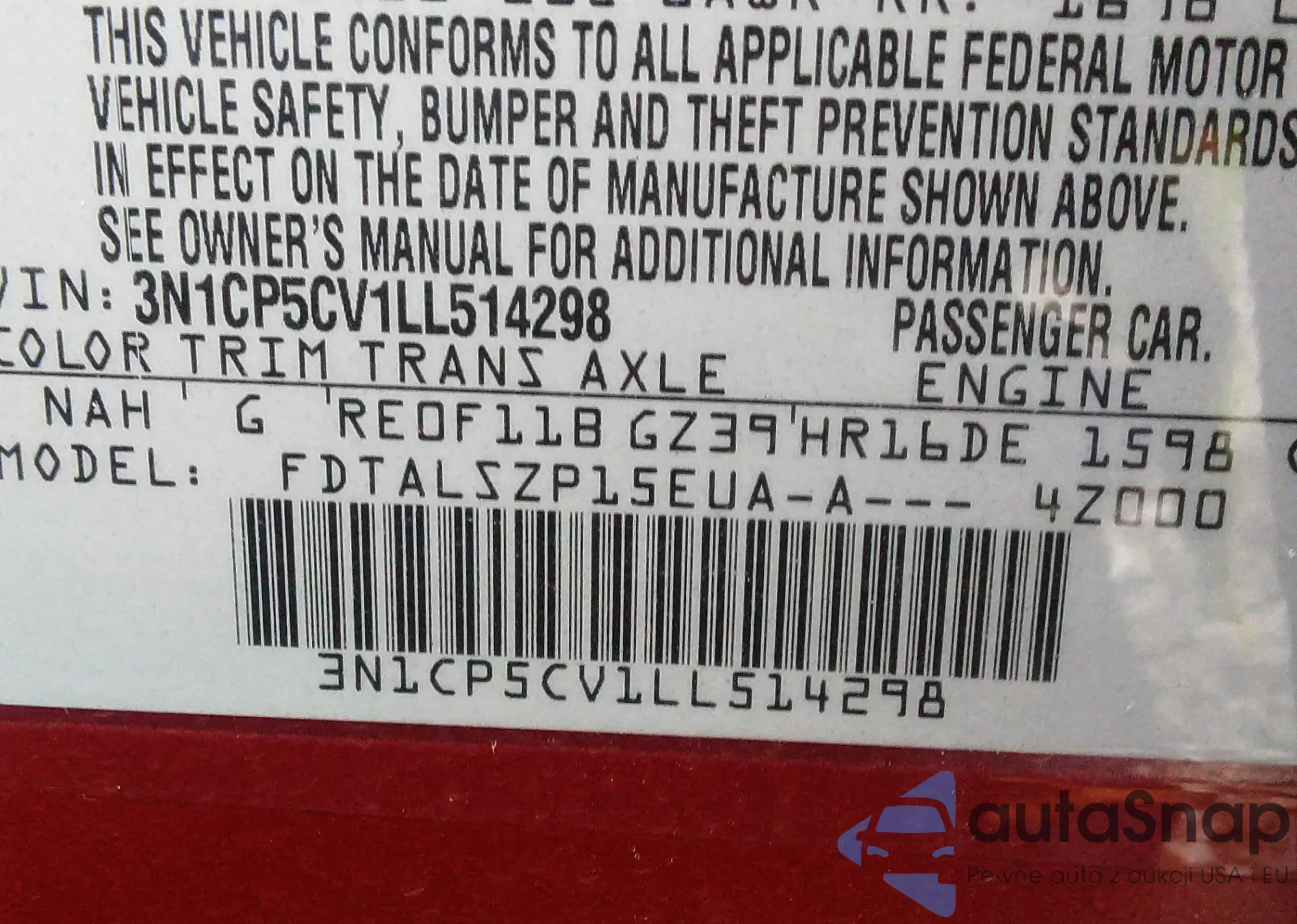 LOT: 35728680 VIN: 3N1CP5CV1LL514298