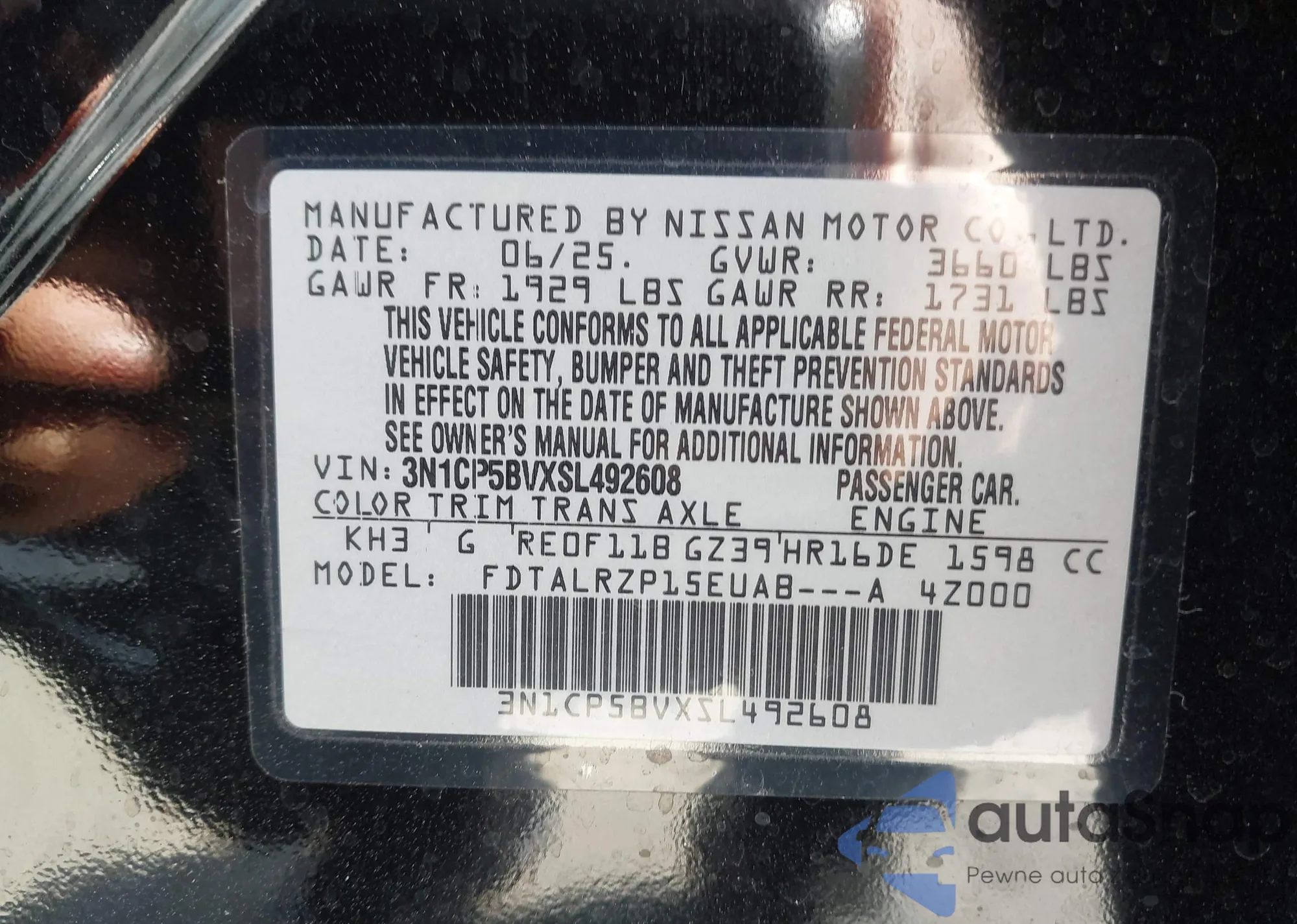 • VIN 3N1CP5BVXSL492608