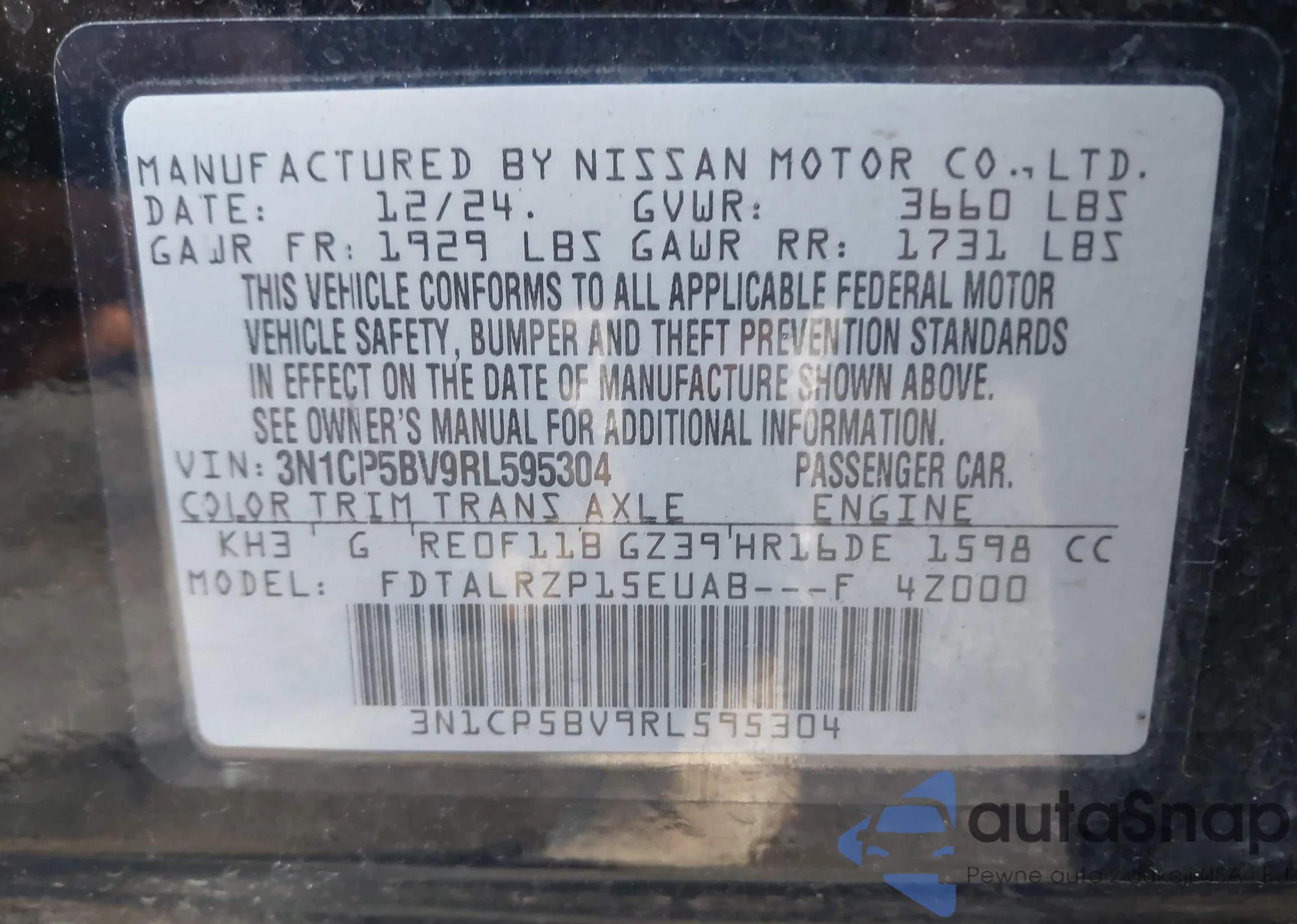 • VIN 3N1CP5BV9RL595304