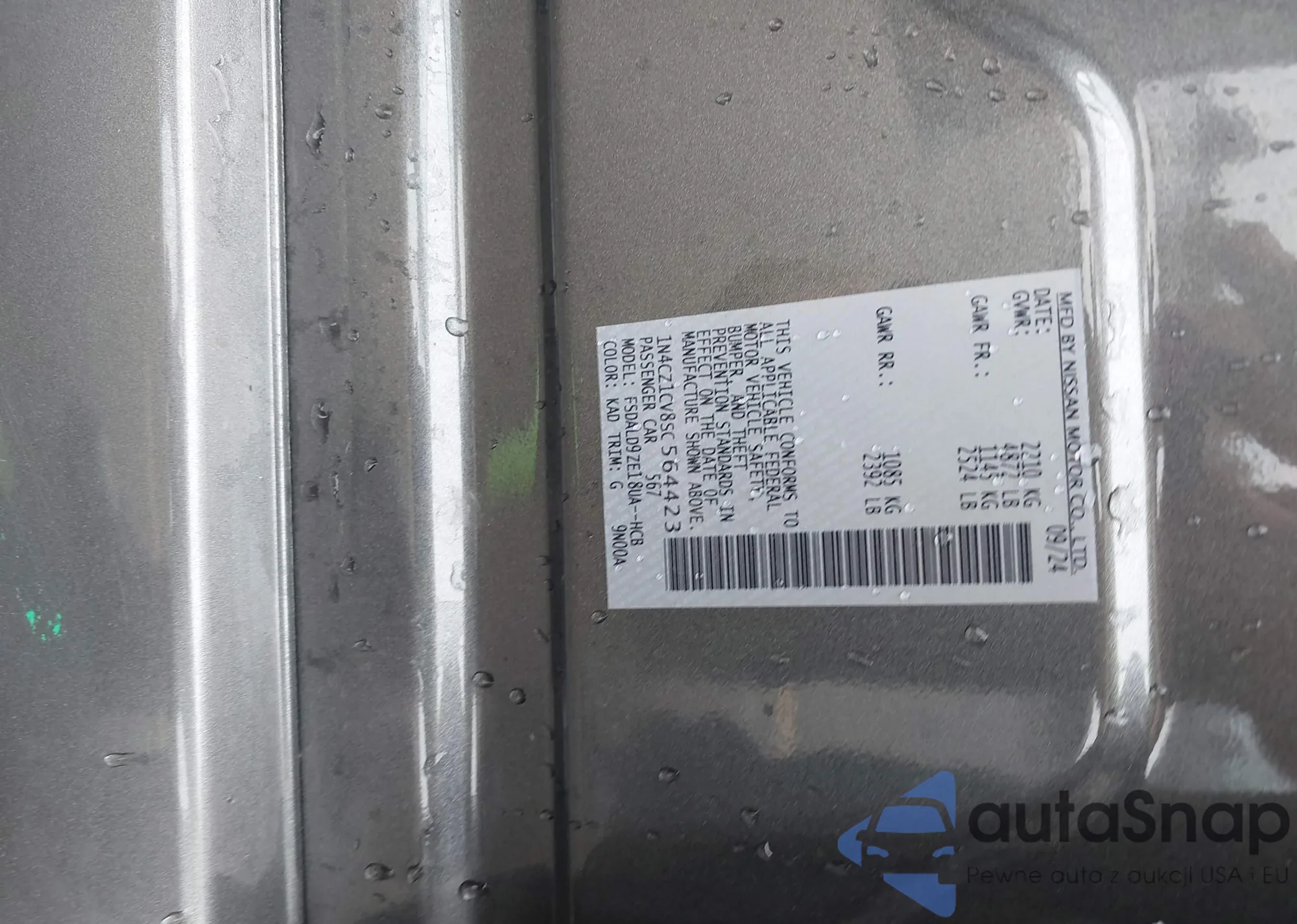 LOT: 43412927 VIN: 1N4CZ1CV8SC564423