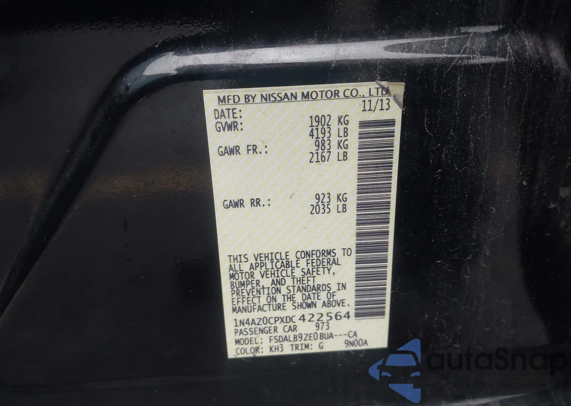• VIN 1N4AZ0CPXDC422564