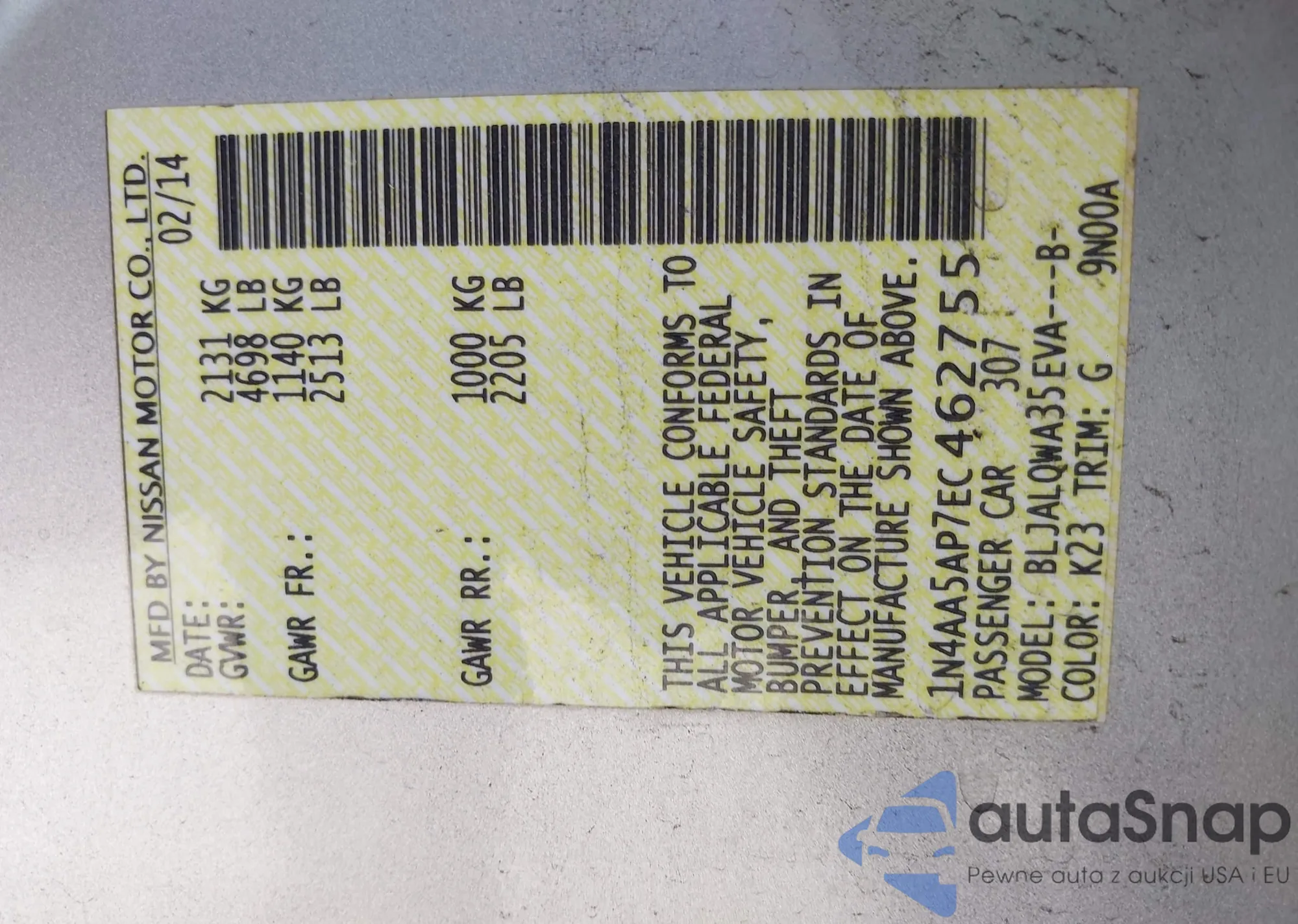 • VIN 1N4AA5AP7EC462755