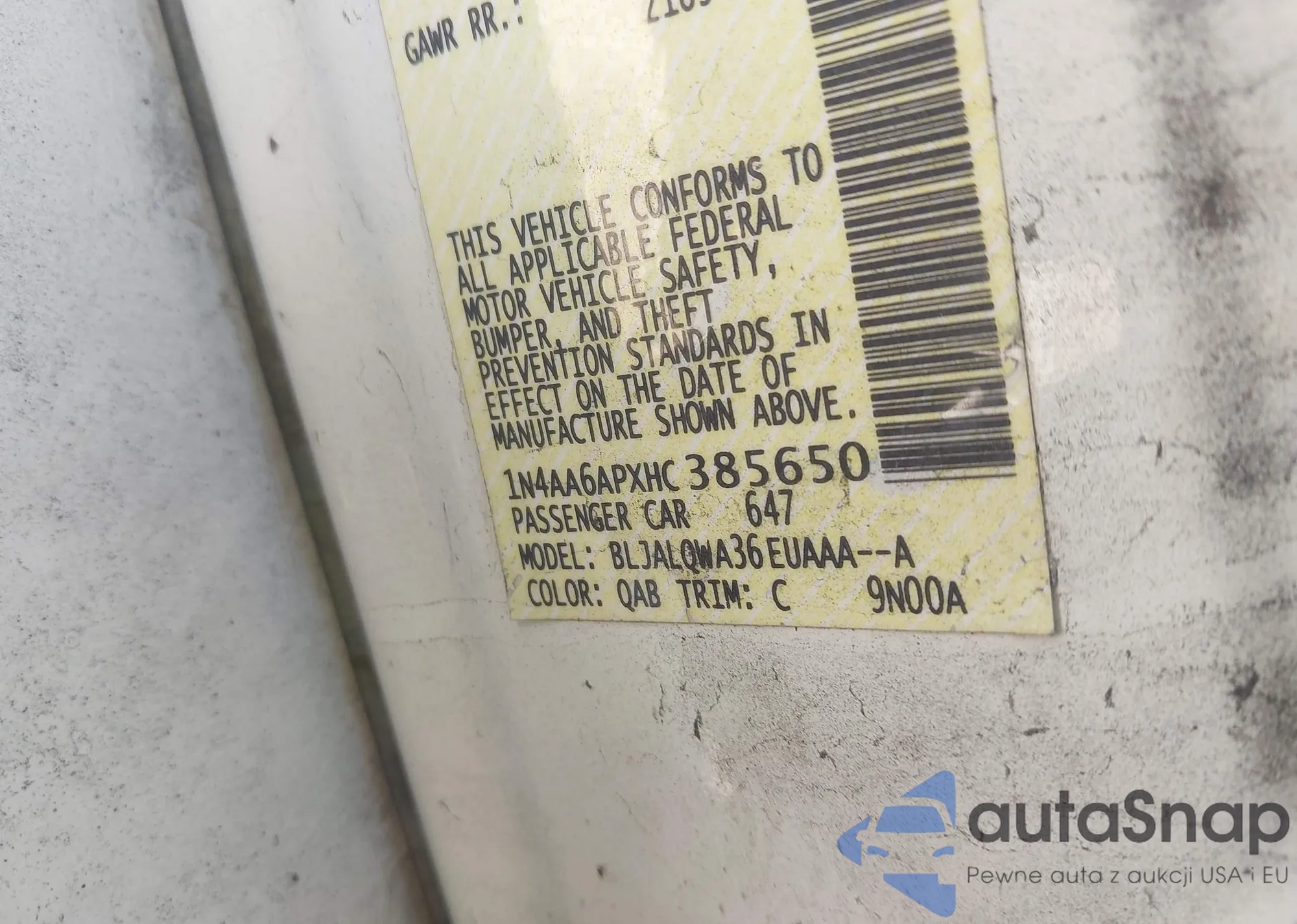 • VIN 1N4AA6APXHC385650