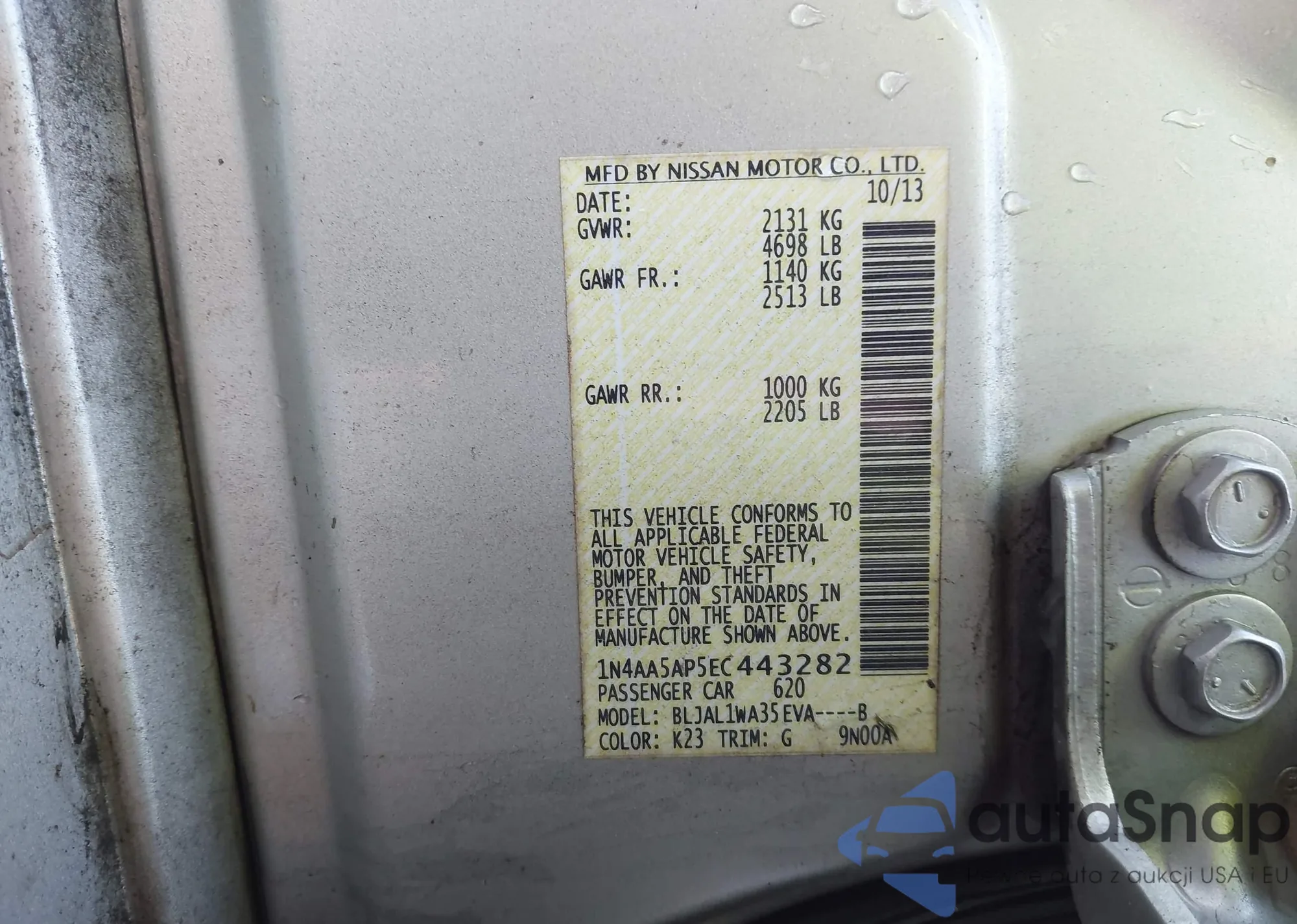 LOT: 94002735 VIN: 1N4AA5AP6EC915683