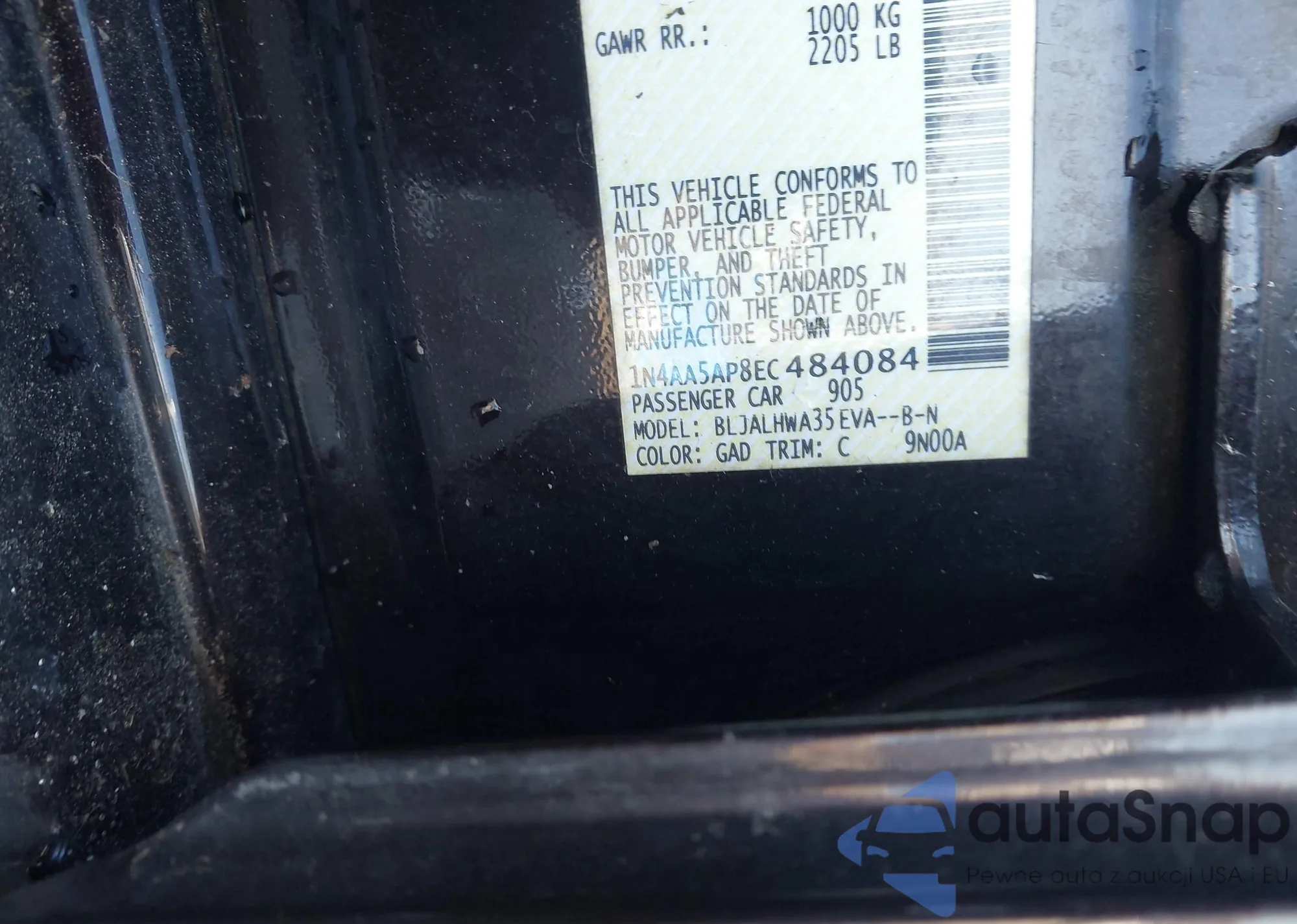 • VIN 1N4AA5AP8EC484084