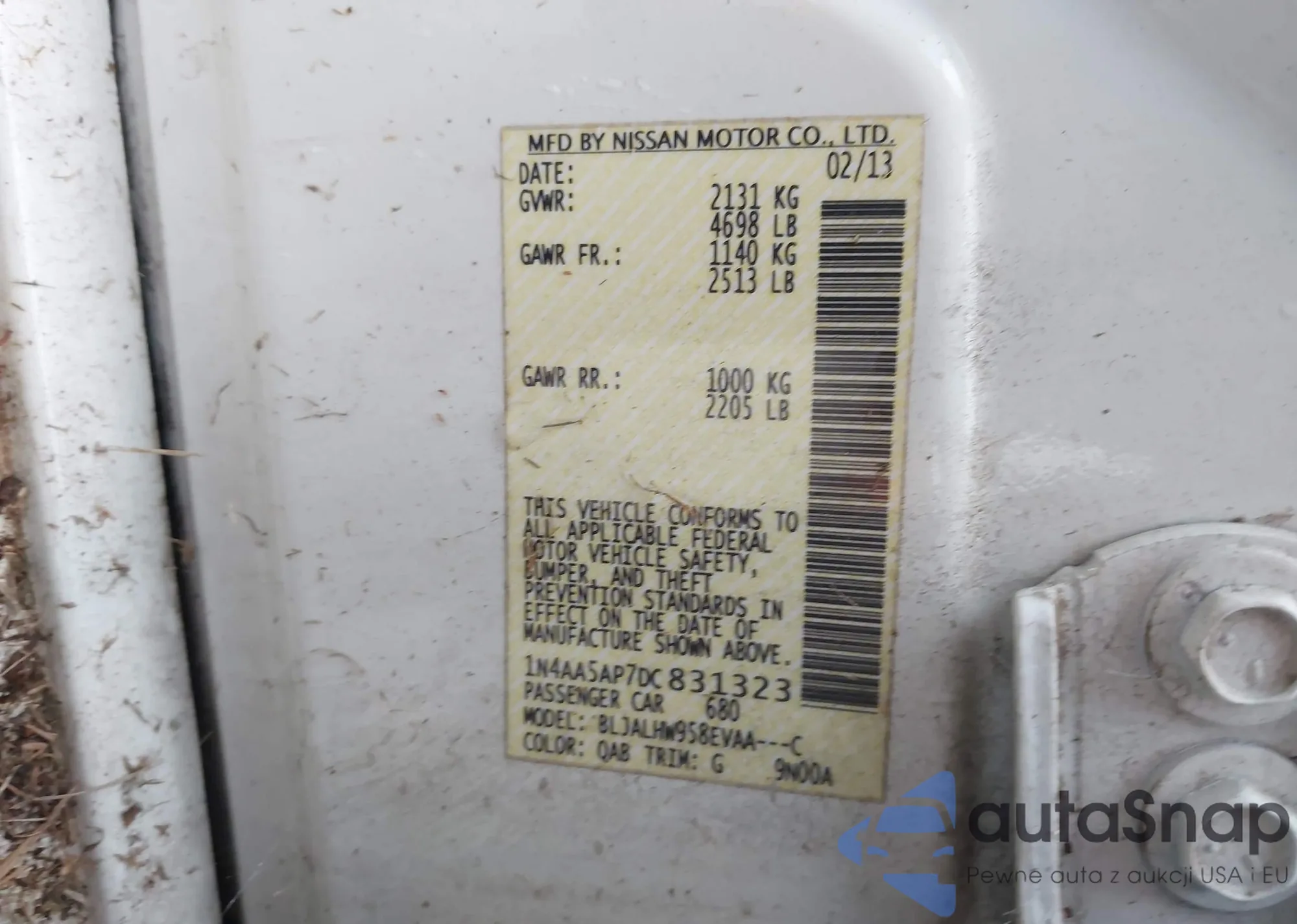 LOT: 43865259 VIN: 1N4AA5AP7DC831323