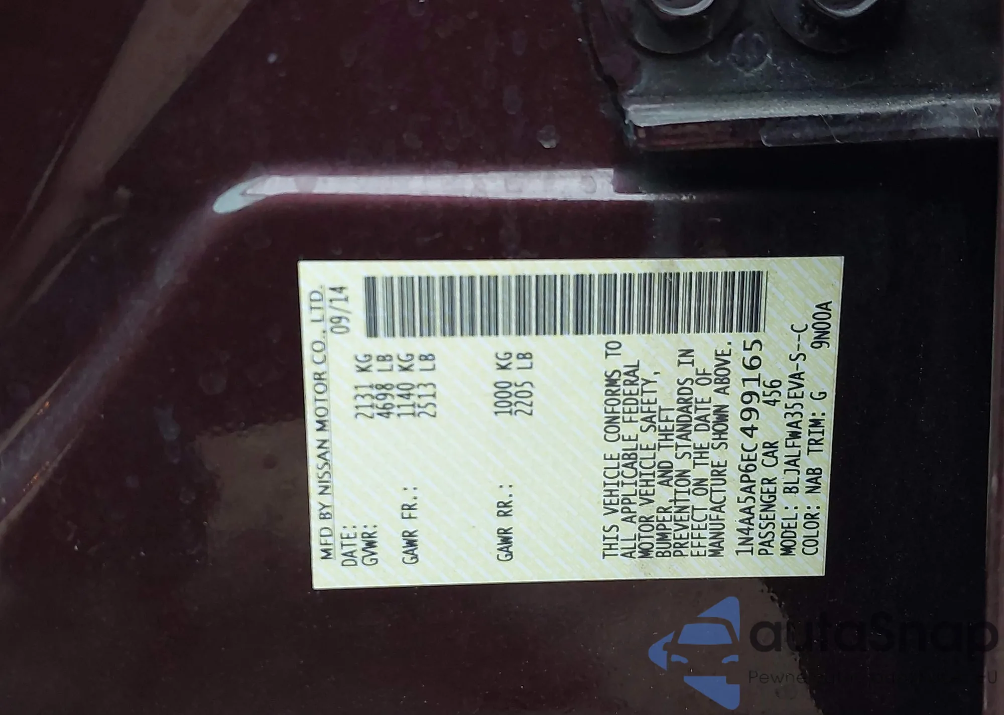 LOT: 44022749 VIN: 1N4AA5AP6EC499165