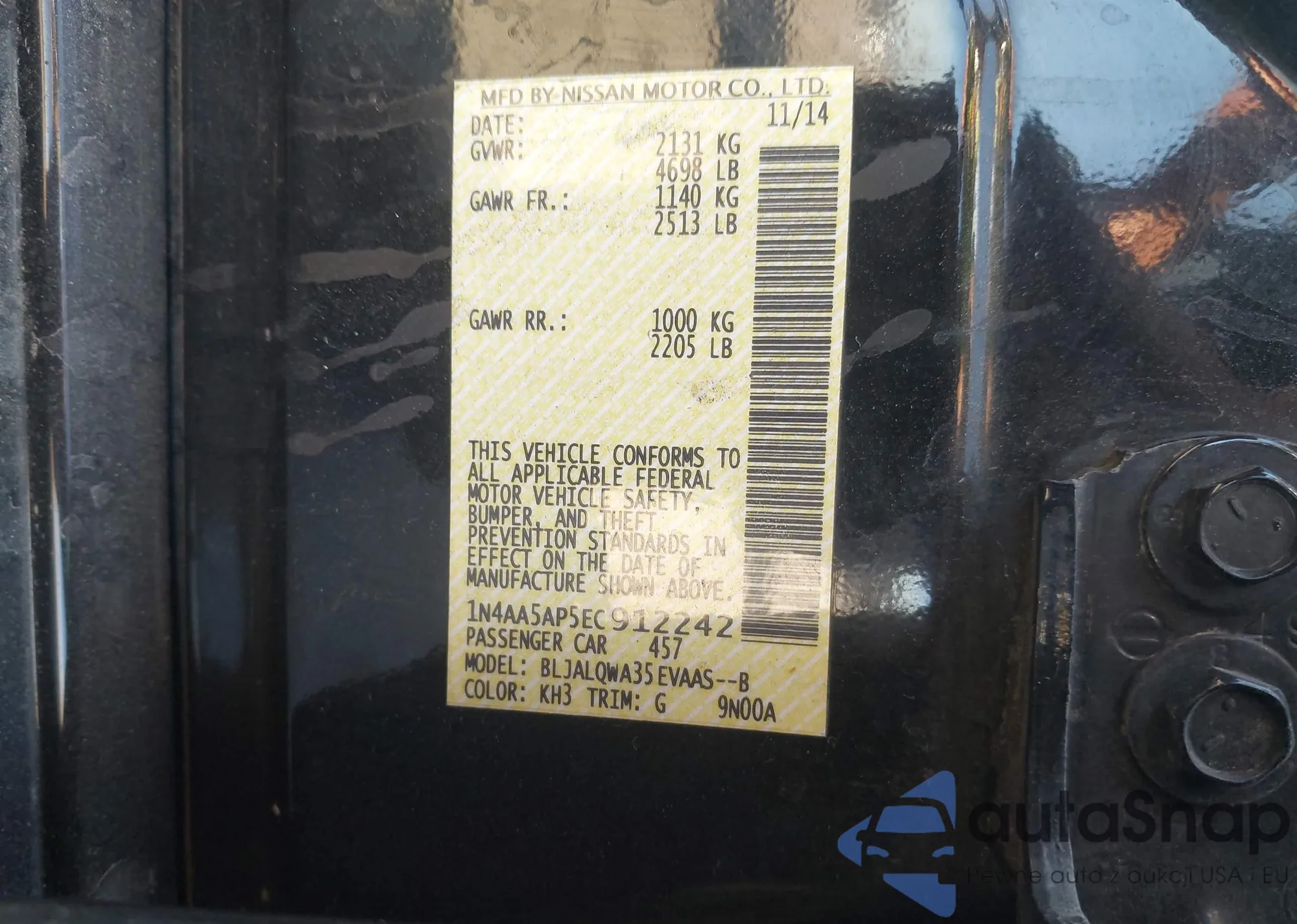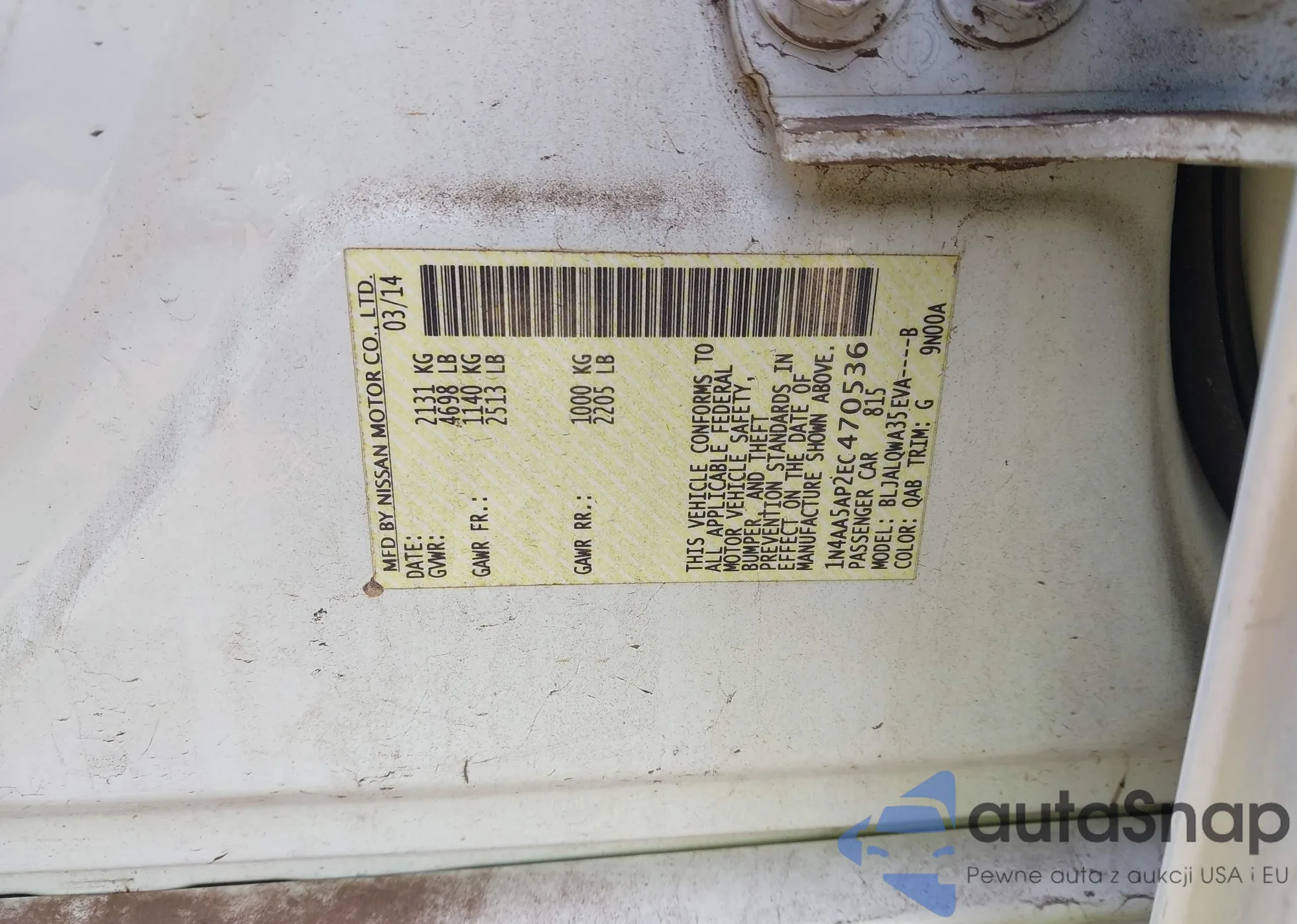• VIN 1N4AA5AP2EC470536
