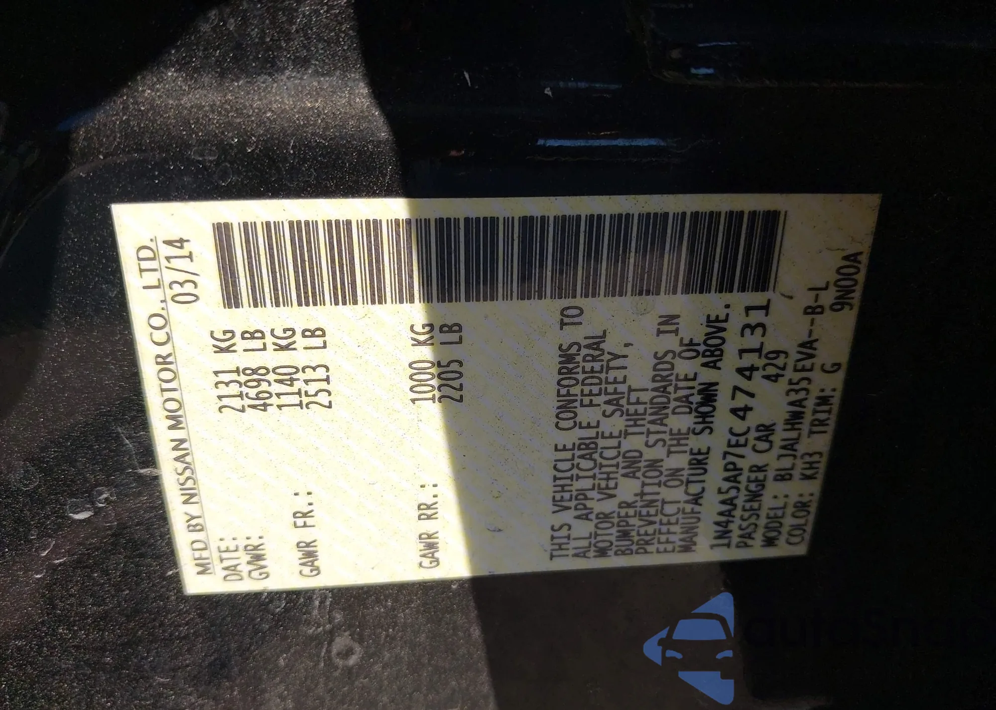 • VIN 1N4AA5AP7EC474131