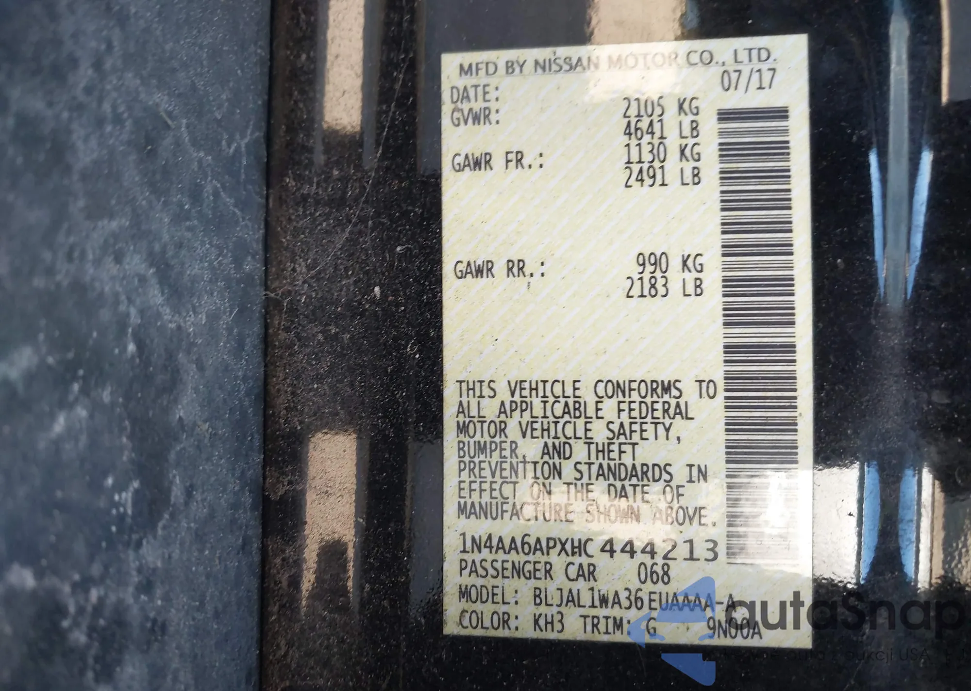 LOT: 43932598 VIN: 1N4AA6AP8HC447692