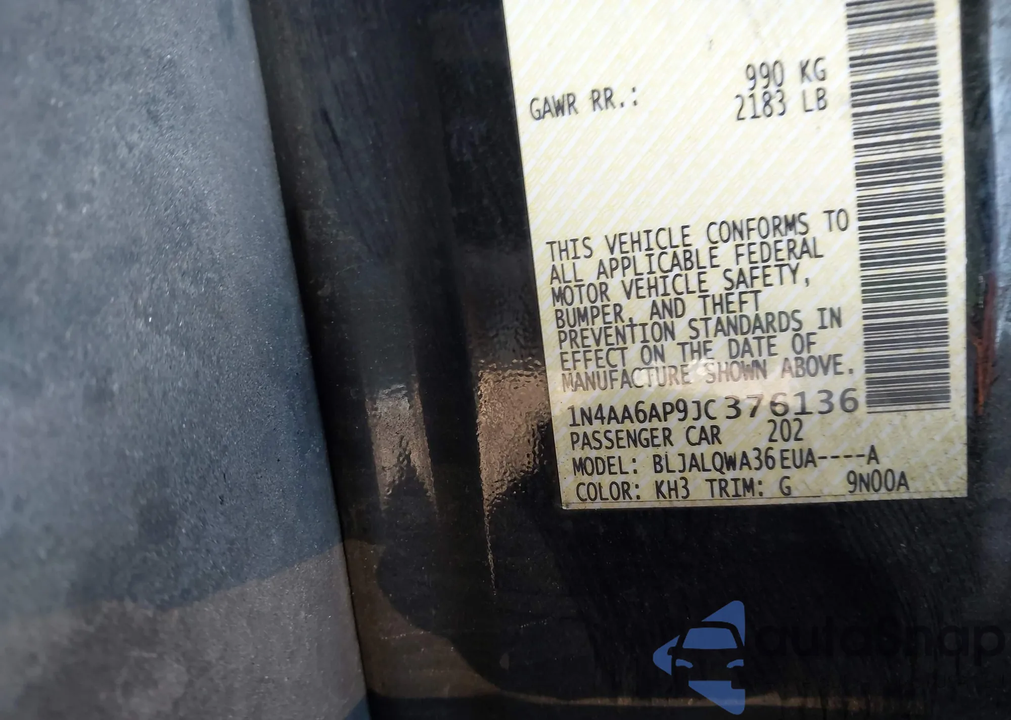 • VIN 1N4AA6AP9JC376136